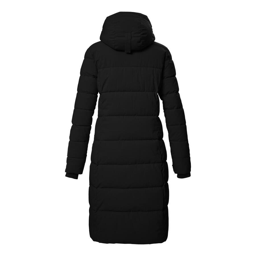 Женское зимнее пальто на пуху с регулируемым капюшоном. Ветрозащитное и водоотталкивающее (10 000 мм), дышащее. Плотный наполнитель и капюшон на подкладке. Двусторонняя молния, практичные карманы. Регулируемые манжеты с трикотажными отворотами. Название: KOW 56 WMN QLTD CT. Сезон: Осень/Зима. Это длинное женское зимнее пальто на пуху надежно сопроводит вас в холодное время года. Пальто ветронепроницаемое и водоотталкивающее с водяным столбом 10 000 мм. В то же время оно дышащее с паропроницаемостью 3000 г/м²/24 ч. Мягкий капюшон с подкладкой регулируется и защищает от холода и ветра. Толстая подкладка пальто обеспечивает дополнительное тепло. Двусторонняя молния оснащена практичной защитой подбородка. Удобные трикотажные манжеты расположены на регулируемых манжетах рукавов. Два боковых кармана на молнии и внутренний карман обеспечивают достаточно места для хранения всех необходимых вещей. Killtec уделяет особое внимание повышению экологичности своих коллекций и их актуальности в будущем. Поэтому killtec уделяет всё больше внимания более ответственным производственным процессам. Это зимнее пальто пропитано безфтористыми веществами и частично изготовлено из переработанных материалов.