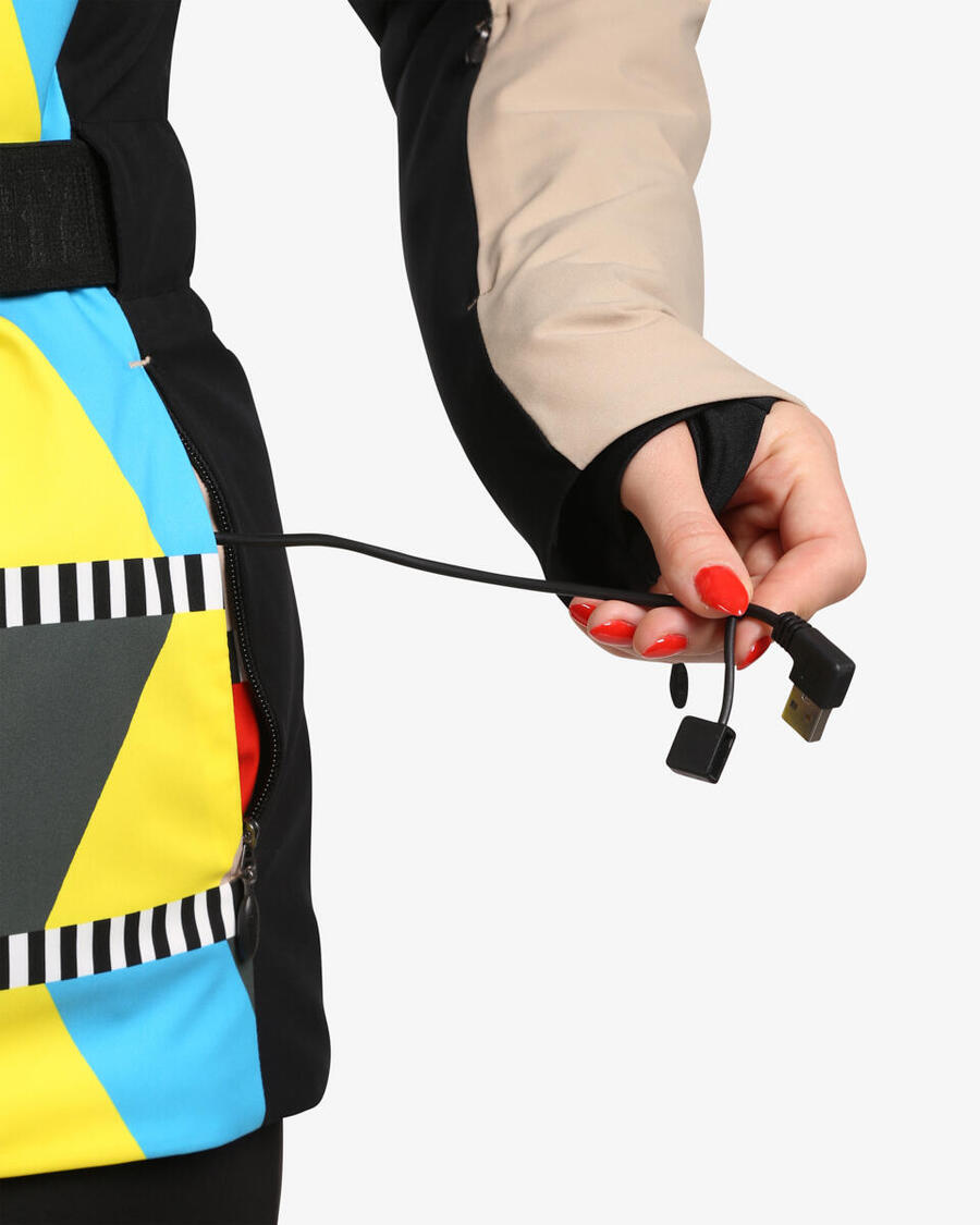 Зимняя горнолыжная куртка Kilpi CLAIR-W впечатляет своим элегантным и инновационным дизайном и встроенной системой подогрева. Она согреет вас и очарует окружающих с первого взгляда. Встроенная система подогрева легко управляется кнопкой на рукаве. Просто нажмите и удерживайте кнопку, чтобы выбрать один из трех температурных режимов. Куртка работает от внешнего аккумулятора емкостью 10 000 мАч с USB-портом в кармане куртки. Внешний аккумулятор в комплект не входит. Нагревательные панели расположены на спине и груди. Материал SIBERIUM с водонепроницаемостью 10 000 мм/м²/24 ч и проклеенные швы на плечах и капюшоне гарантируют сухость даже в самых суровых условиях. Спортивный крой в сочетании с эластичной подкладкой гарантирует свободу движений, а синтетический наполнитель сохраняет тепло. Съемный снежный воротник с силиконовой антискользящей лентой защищает от попадания снега под куртку. Такие детали, как мягкий микрофлис под высоким воротником и съёмный капюшон с роскошным искусственным мехом, придают куртке спортивную элегантность. Ремень с металлической пряжкой на талии, молнии на рукавах и кулиска по нижнему краю позволяют регулировать посадку куртки по вашему вкусу. Карман для ски-пасса на рукаве, внутренний карман для маски и карман на молнии для ценных вещей позволят вам всегда иметь всё необходимое под рукой. Куртка украшена современным принтом по всей поверхности и прекрасно сочетается с нашими горнолыжными брюками TORIEN-W из софтшелла. Чувствуйте себя комфортно на склонах и не останетесь незамеченными. Инструкцию по использованию и стирке куртки со встроенной системой подогрева можно найти здесь.