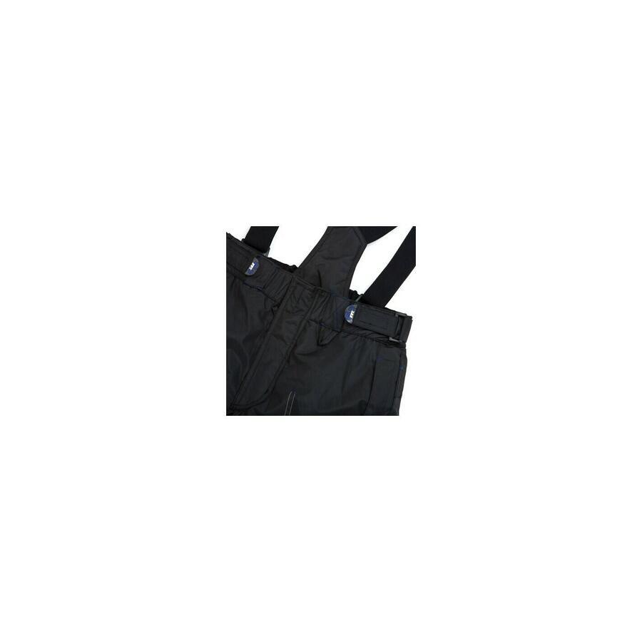 Застежка спереди на молнию и металлические пряжки. Эластичный регулируемый пояс с застежками-липучками по бокам. Эластичные ремешки, регулируемые и съёмные, с пуговицами. Манжеты на штанинах на молнии и липучках, а также снегозащитный экран на щиколотке. Накладные карманы на молнии по бокам и на бедре. Накладные карманы на липучке сзади. Вышивка на бедре и спине. Пластиковая эмблема на штанине. Подкладка из нейлона и трикотажной сетки.