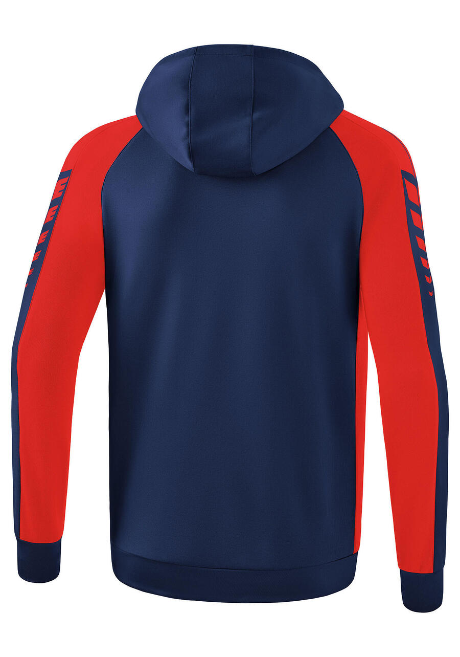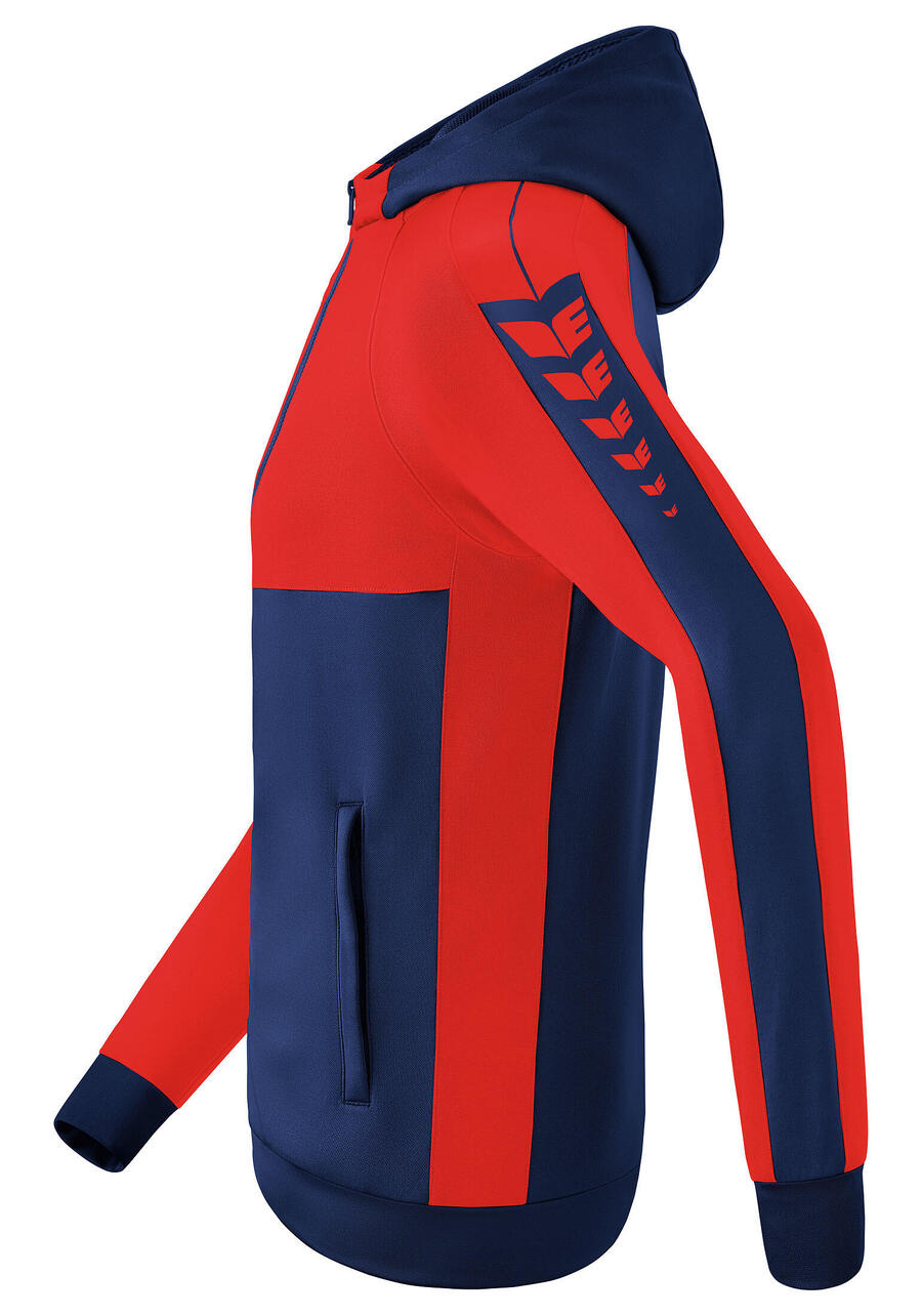 Спортивная куртка Six Wings изготовлена из прочного материала, который выдержит любые спортивные нагрузки. Благодаря содержанию хлопка куртка невероятно мягкая на ощупь. В то же время полиэстер обеспечивает ей функциональные свойства. Спортивная куртка дополнена практичными деталями, такими как боковые карманы на молнии, широкие ребристые манжеты на рукавах и подоле, а также высокий воротник с капюшоном, что делает ее поистине незаменимой вещью.