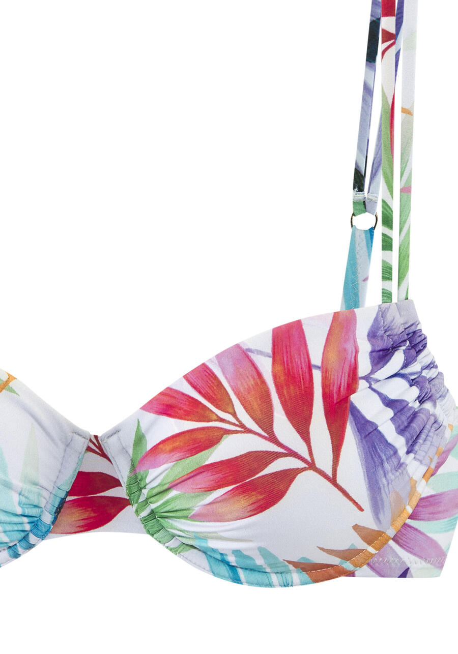 Бикини на косточках от Lascana. Сплошной принт с листьями. Верх со съёмными мягкими чашечками и регулируемыми двойными бретелями. Регулировка по бокам. Высокий вырез, сборка по бокам. Комфортное качество. ING-298G