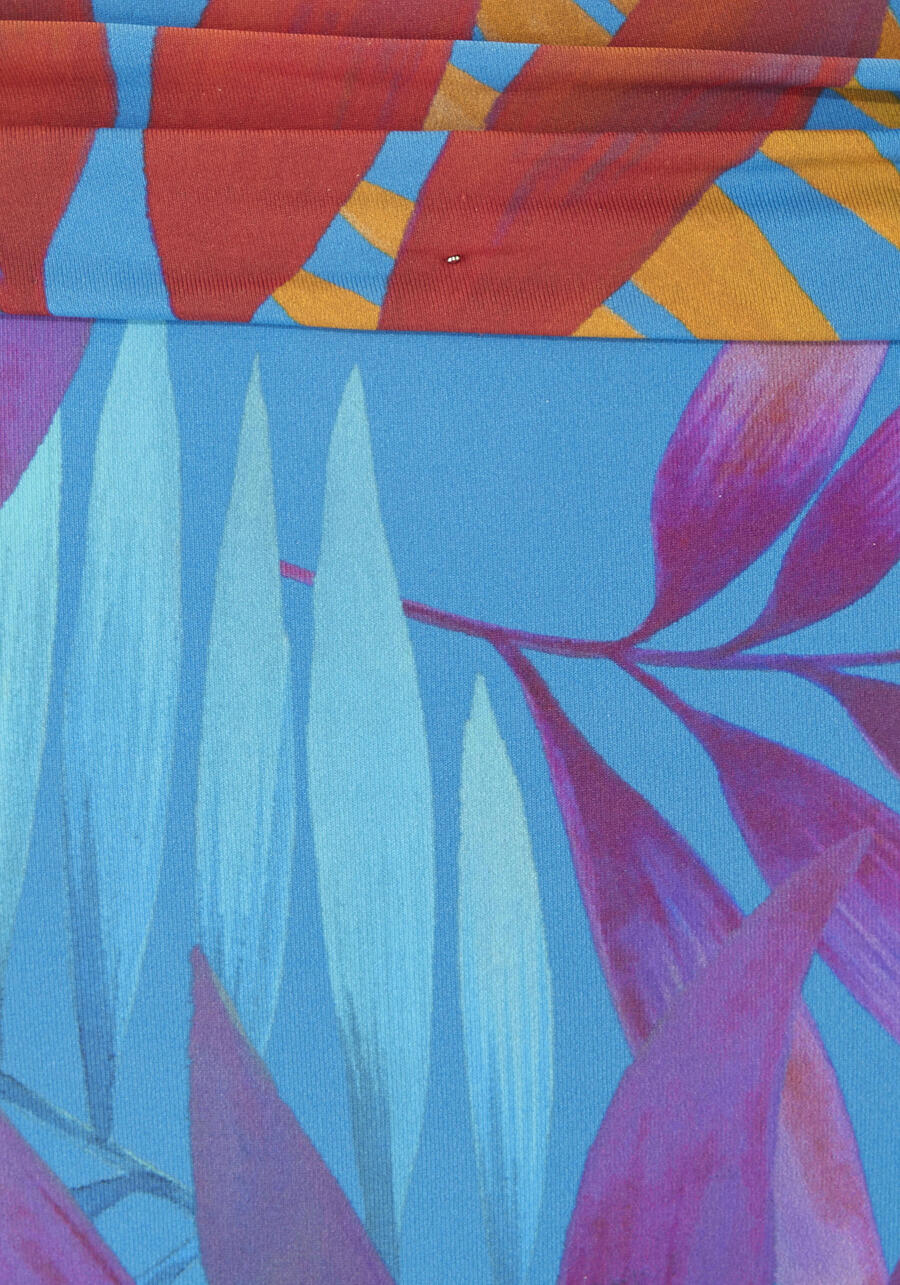 Треугольный купальник-бикини от Lascana с модным принтом в виде листьев по всей поверхности. Верх со съёмными мягкими чашечками и регулируемыми бретельками. Декоративное кольцо между чашечками. Плавки с отворотом на поясе и декоративным кольцом. Мягкая микрофибра. ING-296G