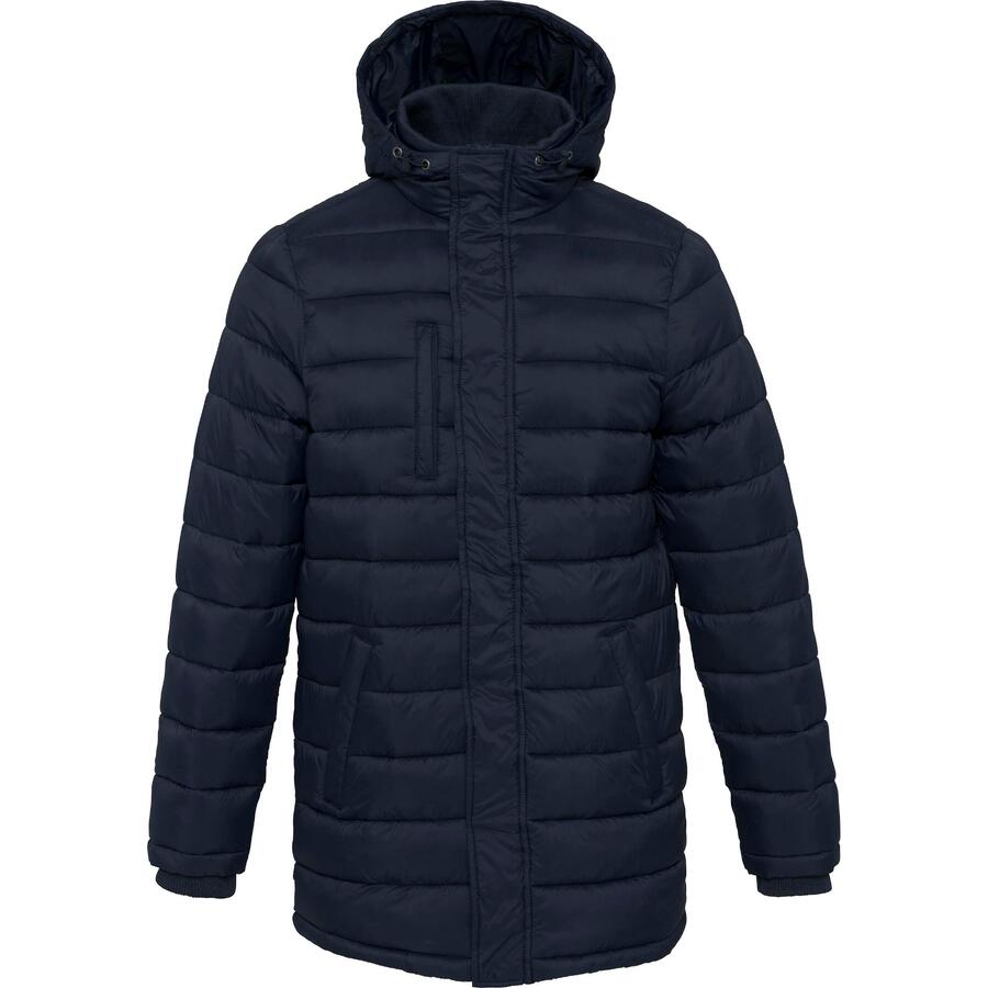 100% полиамид. Подкладка из полиэстера. Теплая и ультралегкая. 2 передних кармана и 1 нагрудный карман на молнии с кантом. Потайная молния с двойным бегунком, скрытая планкой и кнопками. Контрастная внутренняя часть капюшона и основной части (кроме темно-синего цвета). Ребристая подкладка воротника и рукавов.