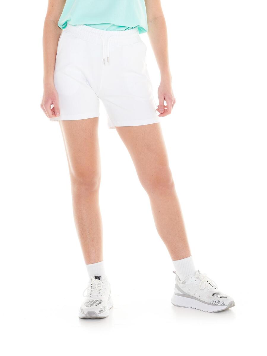 Женские шорты из базовой коллекции Leone 1947 Apparel. Талия регулируется шнурком, боковые карманы и свободный крой. Металлический логотип на левой штанине. Тканые этикетки пришиты с внутренней стороны изделия.