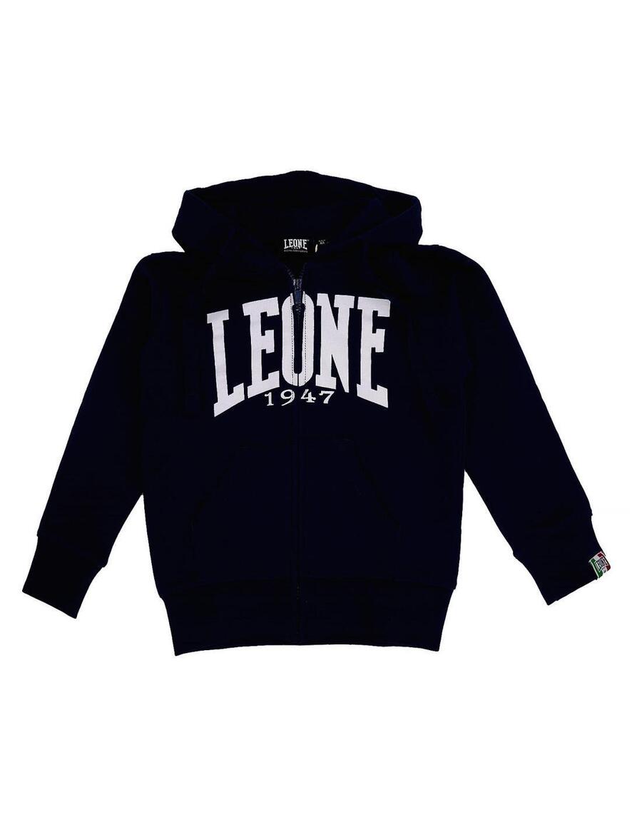 Базовая толстовка с капюшоном Leone 1947 Apparel Basic для мальчиков с крупным логотипом, универсальная и функциональная, подходит как для спорта, так и для отдыха. Изготовлена из летнего флиса (100% хлопок без начеса). Простые и функциональные детали: эластичный резиновый подол и манжеты, хлопковый шнурок, молния в тон, большие карманы, принт с логотипом Lion 1947 на груди и тканая этикетка на манжете. Тканые этикетки вшиты в изделие.