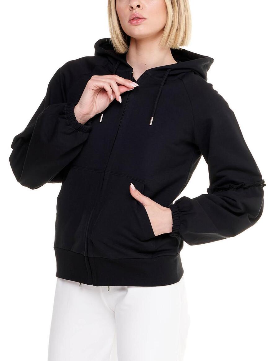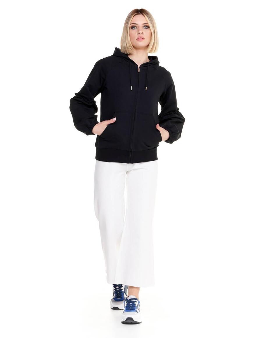 Женская блестящая толстовка с капюшоном Leone 1947 Apparel из лёгкого, эластичного летнего трикотажа (без начёса). Рукава имеют более мягкую нижнюю часть от локтя вниз, присборенную часть на локте и эластичную манжету. Детали: резинка внизу, лейбл с логотипом Leone 1947 на капюшоне и хлопковый шнурок с металлическим шнурком. Тканые лейблы пришиты к изделию.