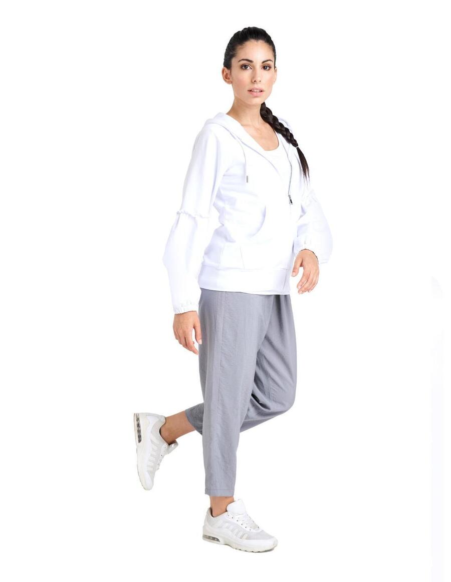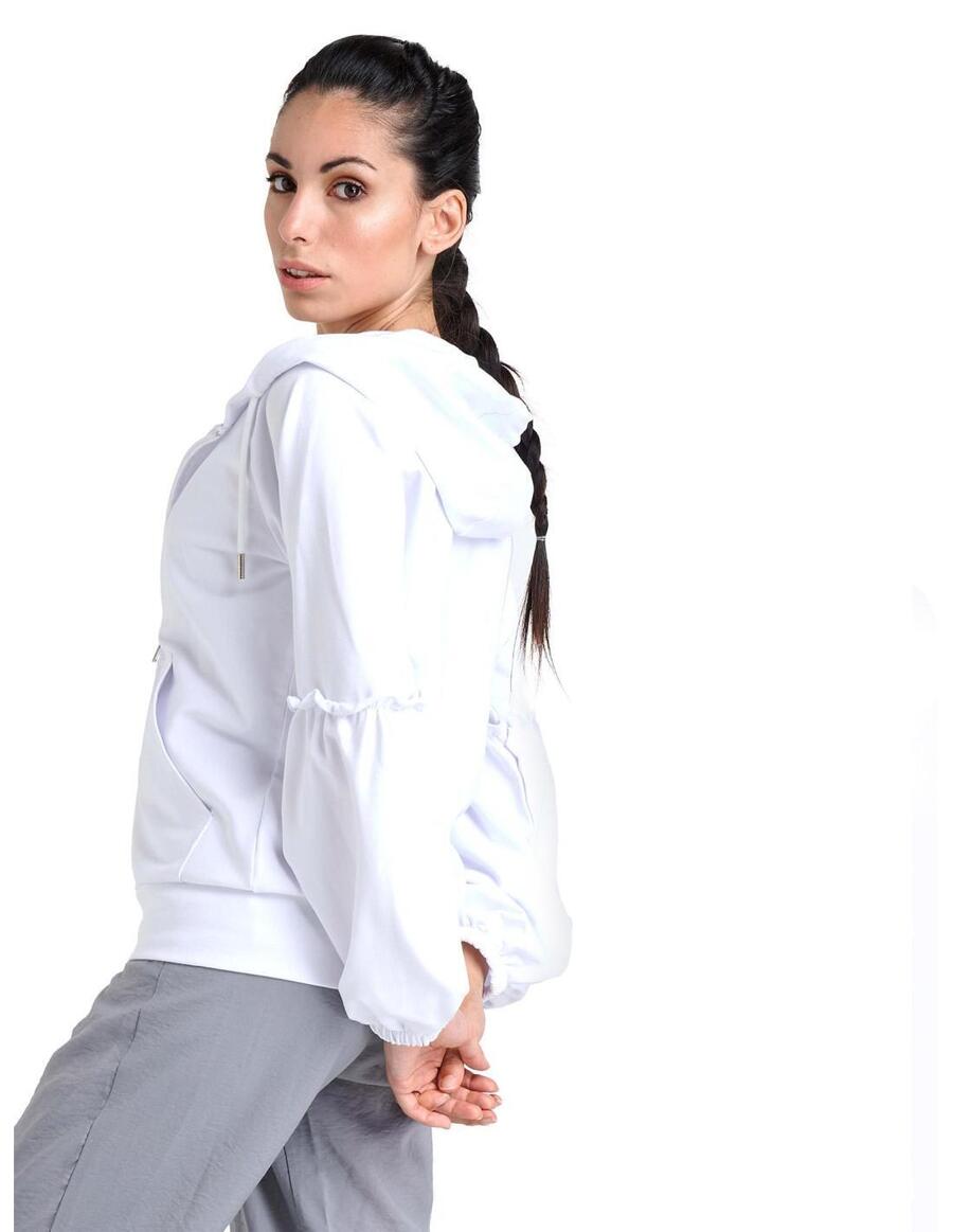Женская блестящая толстовка с капюшоном Leone 1947 Apparel из лёгкого, эластичного летнего трикотажа (без начёса). Рукава имеют более мягкую нижнюю часть от локтя вниз, присборенную часть на локте и эластичную манжету. Детали: резинка внизу, лейбл с логотипом Leone 1947 на капюшоне и хлопковый шнурок с металлическим шнурком. Тканые лейблы пришиты к изделию.