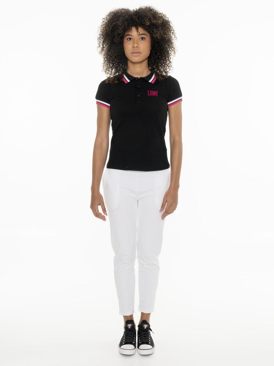 Женская рубашка-поло из пике с отложным воротником. Воротник и манжеты отделаны контрастными тканевыми полосками. Логотип Leone 1947 вышит сбоку в форме сердца. Универсальная модель, идеально подходящая для занятий спортом на открытом воздухе и отдыха.