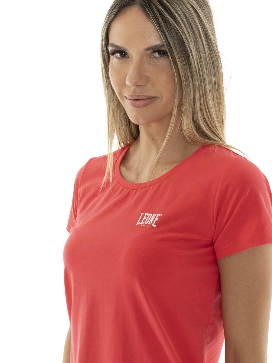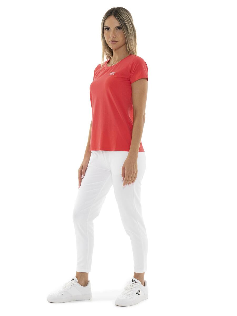 Женская майка из эластичного хлопка с большим металлическим логотипом в виде листа по центру.