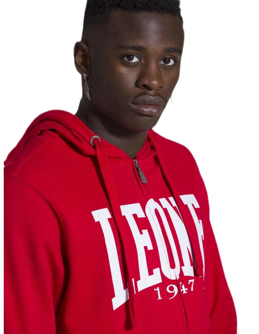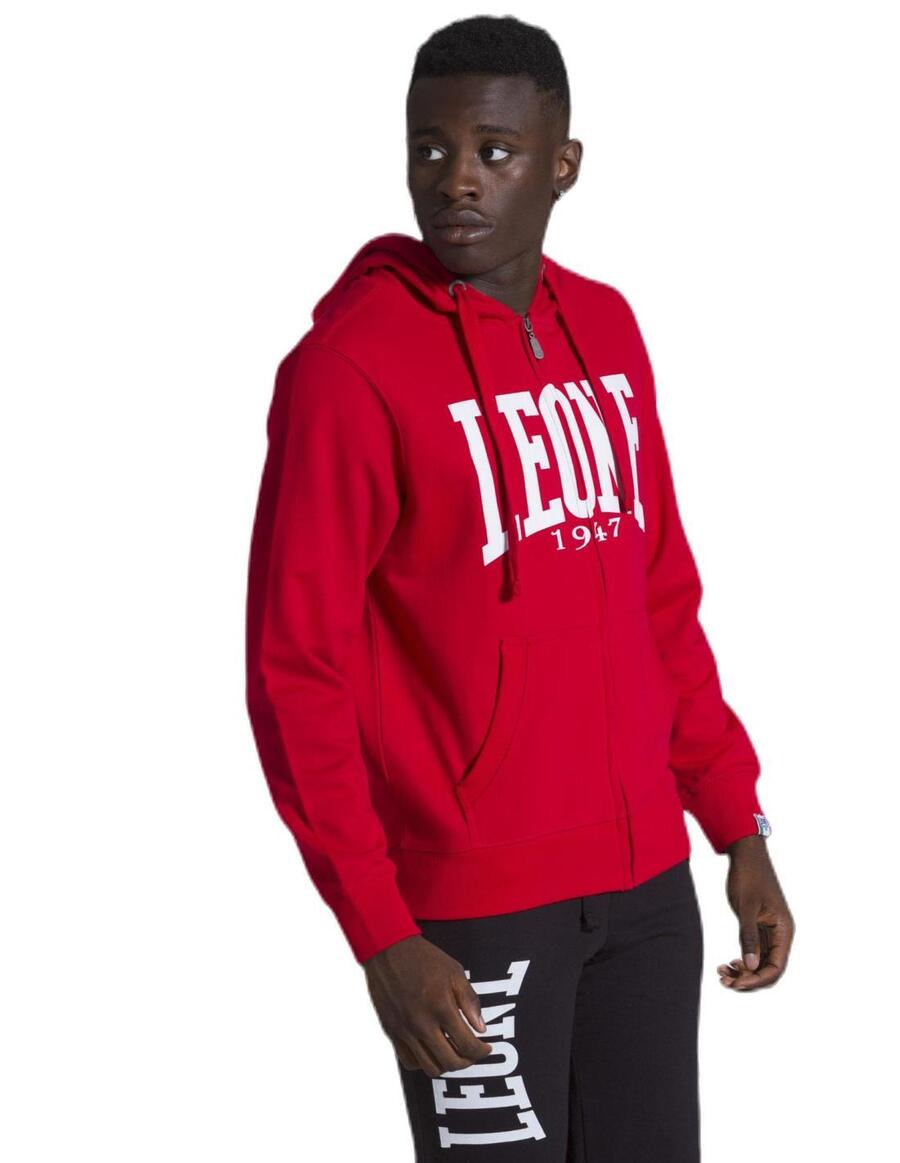 Мужская толстовка с капюшоном на молнии Leone 1947 Apparel Basic Big Logo. Толстовка с начесом, принт с логотипом на водной основе, внутренняя часть капюшона из окрашенного трикотажа, контрастный капюшон, пластиковая молния, фирменная металлическая молния, люверсы из состаренного серебра, хлопковый шнурок, тканые этикетки Leone 1947 Apparel.
