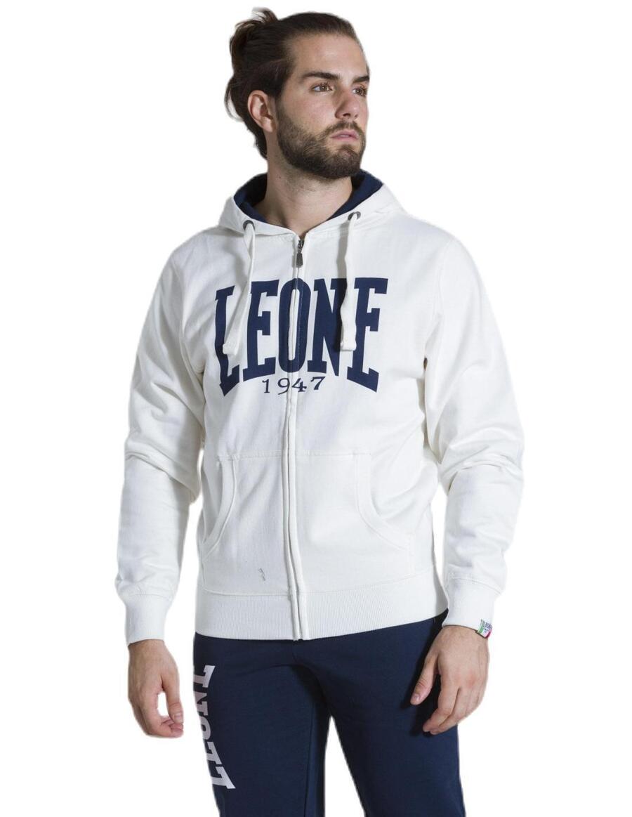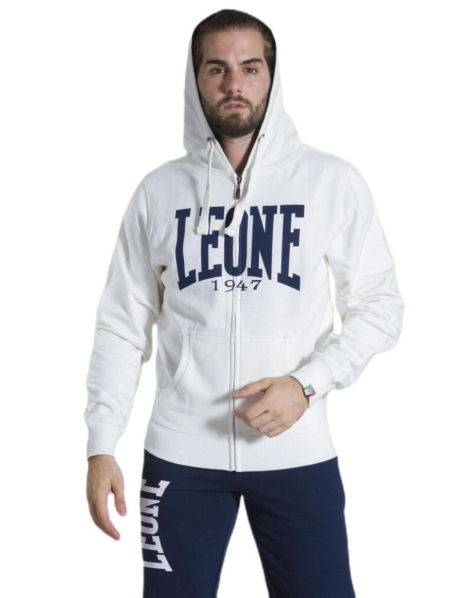 Мужская толстовка с капюшоном на молнии Leone 1947 Apparel Basic Big Logo. Толстовка с начесом, принт с логотипом на водной основе, внутренняя часть капюшона из окрашенного трикотажа, контрастный капюшон, пластиковая молния, фирменная металлическая молния, люверсы из состаренного серебра, хлопковый шнурок, тканые этикетки Leone 1947 Apparel.