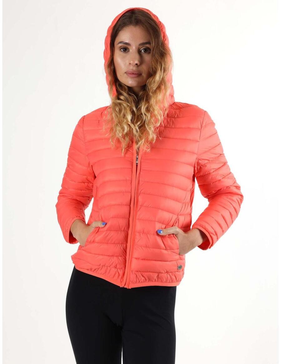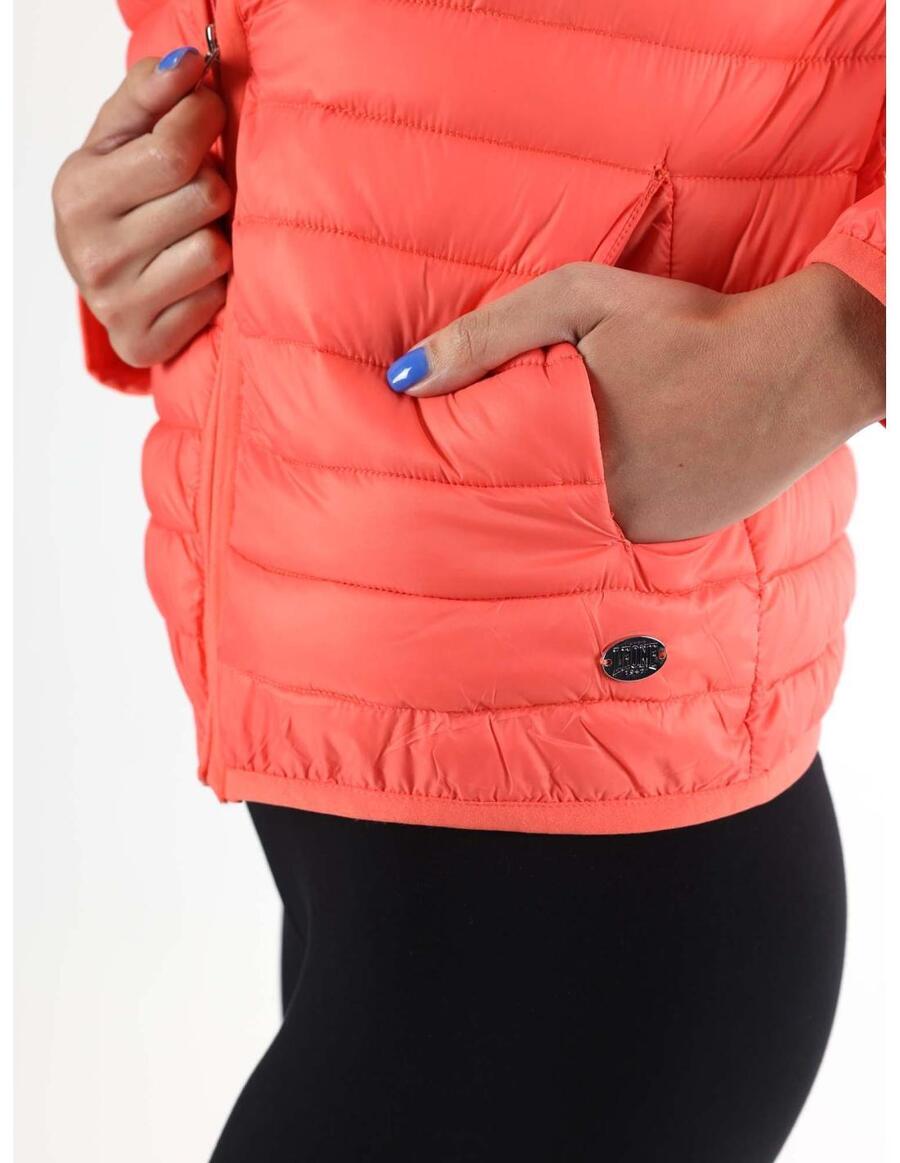 Женская стеганая куртка плотностью 70 грамм на молнии с двумя металлическими бегунками. Карманы спереди, металлическая бляшка с логотипом на левом боку.