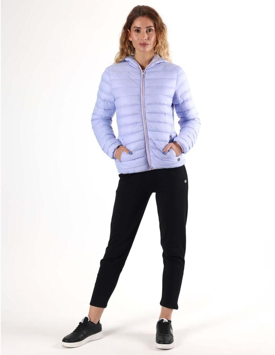 Женская стеганая куртка плотностью 70 грамм на молнии с двумя металлическими бегунками. Карманы спереди, металлическая бляшка с логотипом на левом боку.