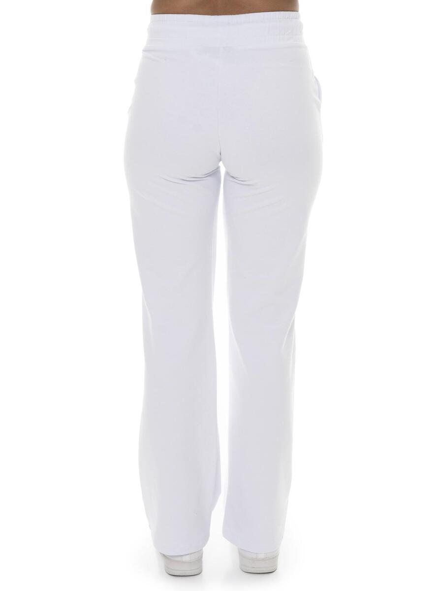 Женские брюки-палаццо свободного покроя с эластичным поясом на регулируемой кулиске и хромированной металлической отделкой по низу. Прорезные карманы по бокам. На левом кармане прикреплена металлическая пластинка с логотипом Leone 1947. Изделие выполнено из эластичного хлопка без ворса.