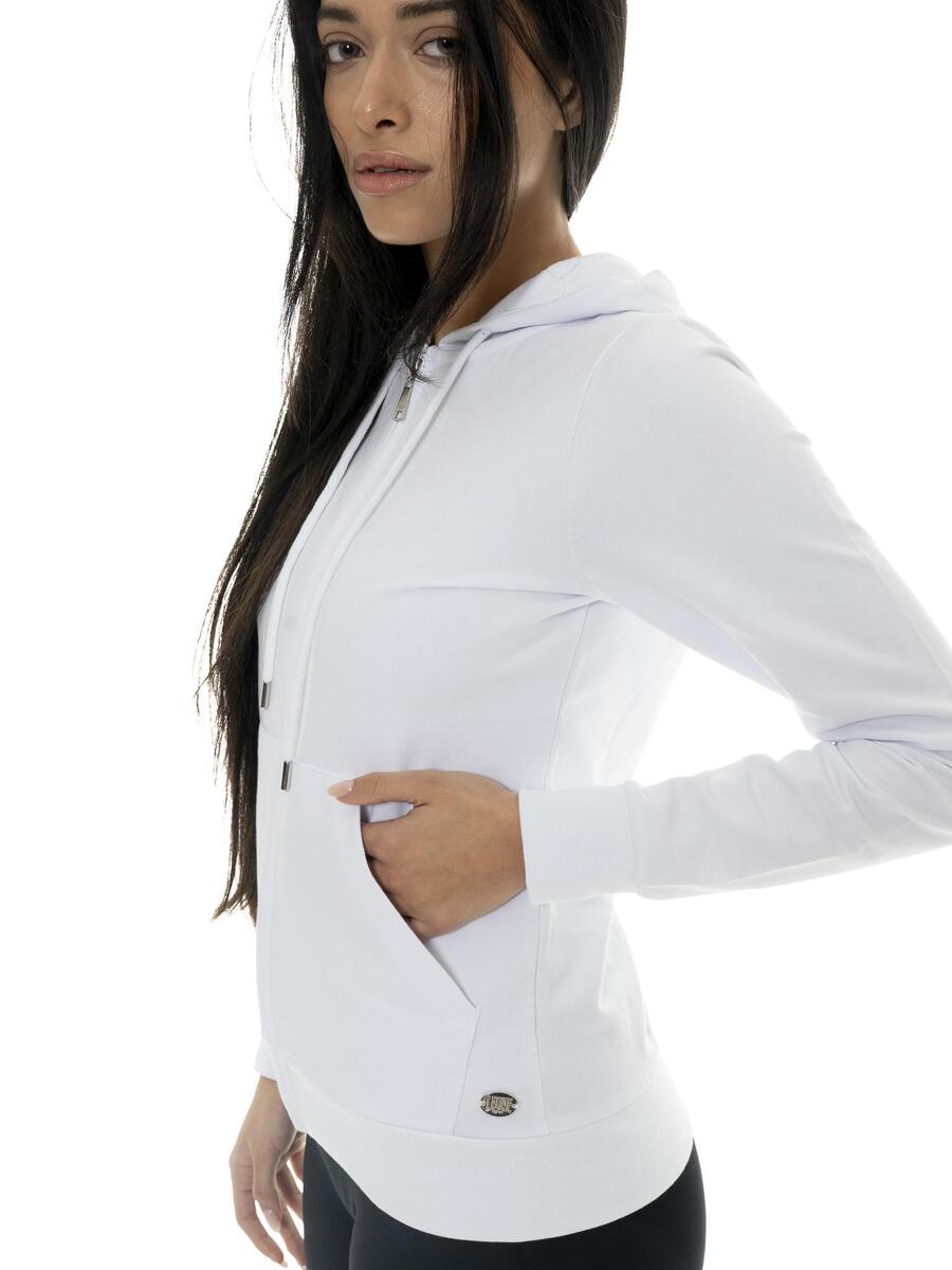 Женская толстовка из нечесаного хлопка, идеально подходит для межсезонья. Толстовка имеет регулируемый капюшон на шнурке с металлическими вставками. На бегунке и металлической пластине слева выгравирован логотип Leone 1947.