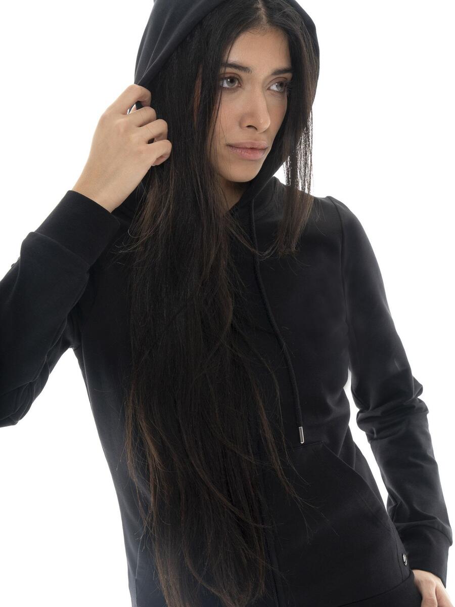 Женская толстовка из нечесаного хлопка, идеально подходит для межсезонья. Толстовка имеет регулируемый капюшон на шнурке с металлическими вставками. На бегунке и металлической пластине слева выгравирован логотип Leone 1947.
