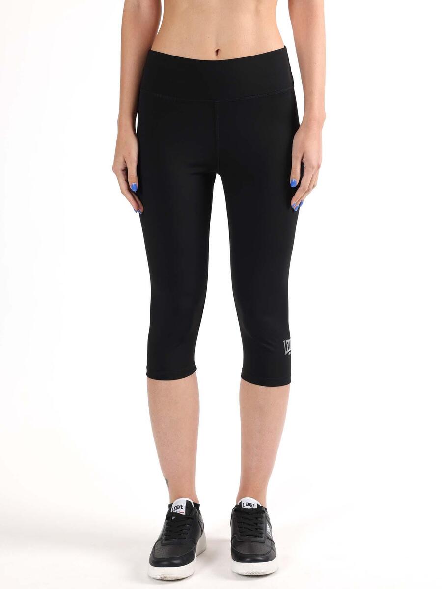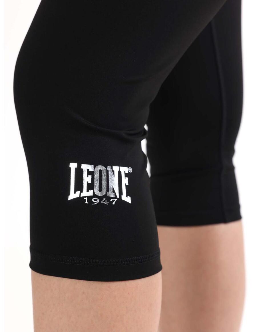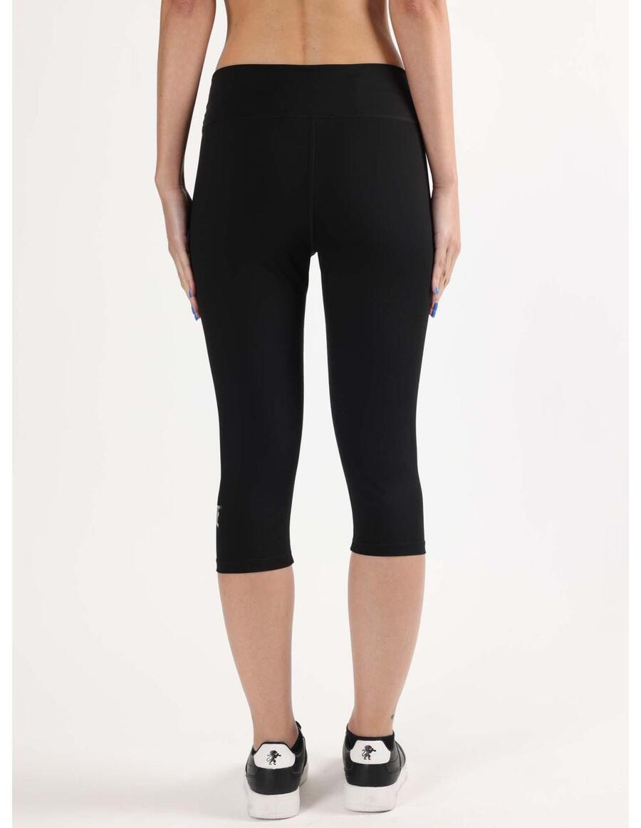 Леггинсы длиной 3/4 с металлическим логотипом в виде листочка внизу левой штанины. Эластичный пояс.