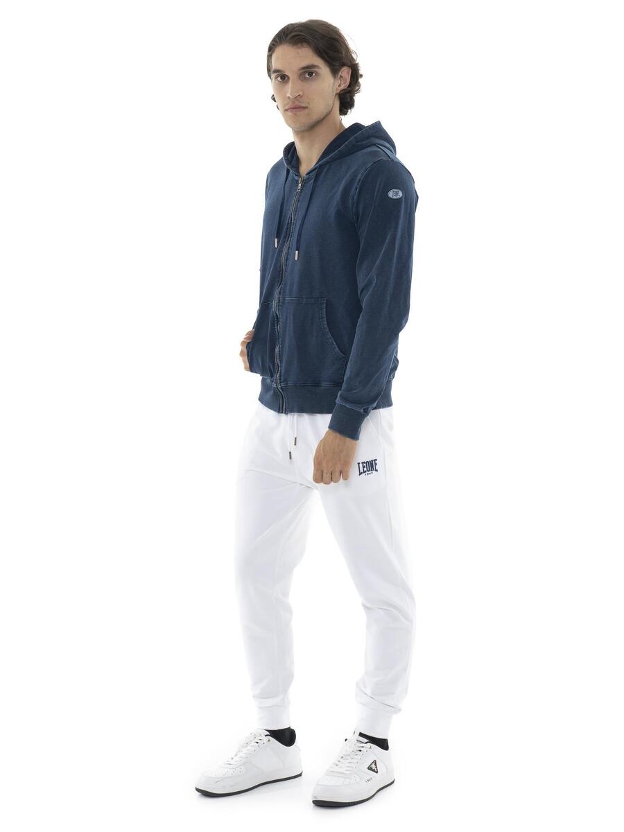Мужская толстовка с капюшоном из джинсовой ткани с застежкой-молнией по всей длине. Особенности: регулируемый капюшон на шнурке, большой центральный карман, эластичные манжеты и подол в рубчик. Логотип Leone на левом плече. Тканые этикетки пришиты с внутренней стороны изделия.