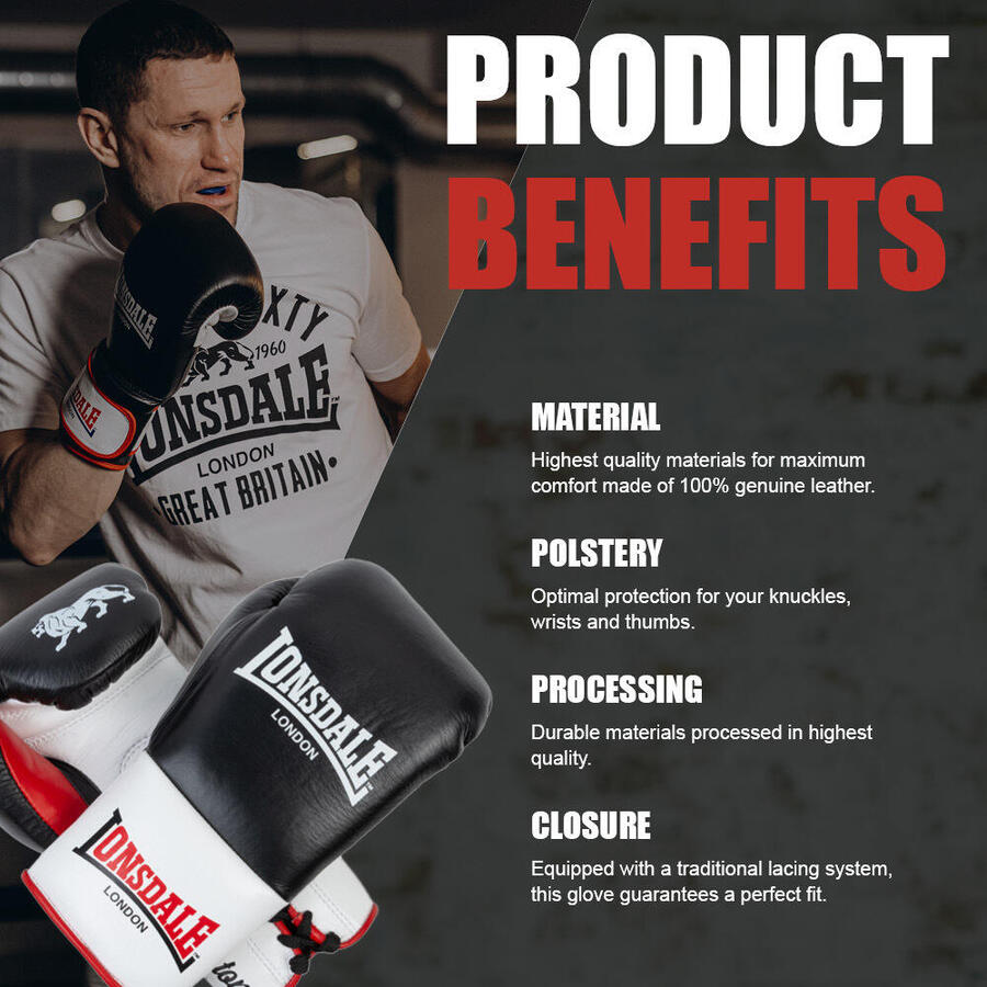 Боксерские перчатки LONSDALE с тремя яркими принтами, традиционной системой шнуровки и многослойной пенной подкладкой для оптимальной амортизации и максимального комфорта. Перчатки подходят для тренировок и интенсивных спаррингов.
