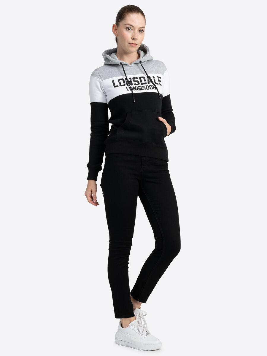 Эта толстовка с капюшоном и разноцветными вставками обязательно привлечёт всеобщее внимание. При ближайшем рассмотрении вы также заметите множество маленьких львов на логотипе Lonsdale. Капюшон на шнурке и нашитый карман-кенгуру дополняют классический образ худи. Эту вещь можно сочетать как с повседневным образом с джинсами и ботинками, так и со спортивным нарядом со спортивными штанами и кроссовками.