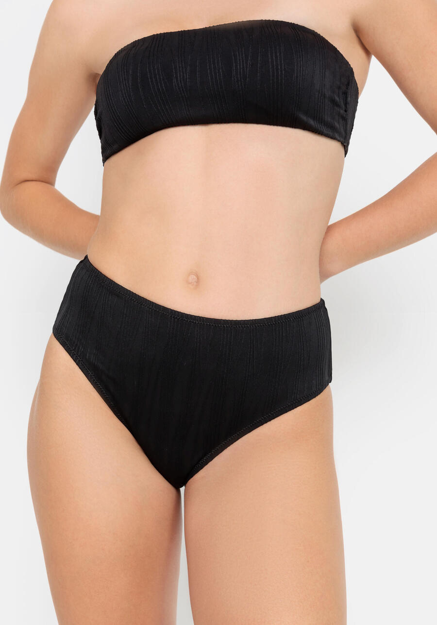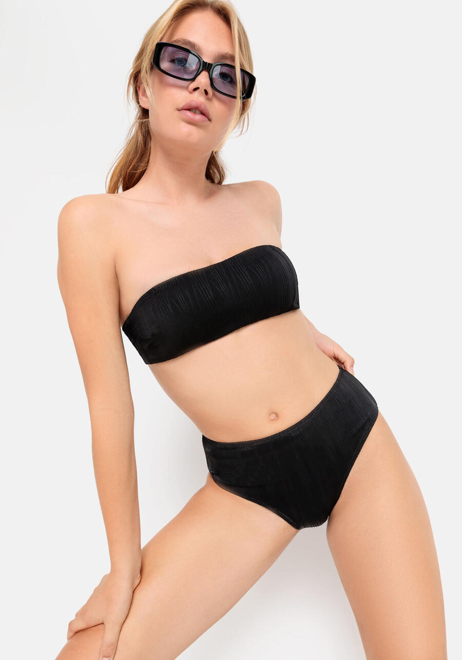 Модный однотонный купальник-бандо от LSCN by Lascana. Верх со съёмными мягкими чашечками и боковыми косточками. Плавки с завышенным кроем и облегающей спинкой. Структурированная ткань. MAY-571