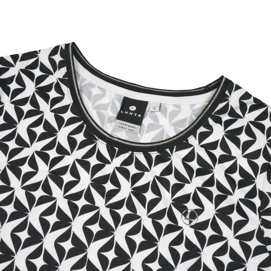 Женская футболка Luhta с круглым вырезом, принтом логотипа и узором. Эта модель AWS ACTIVE сочетает в себе функциональность и комфорт — идеально подходит как для занятий спортом, так и для повседневной жизни. Содержит переработанные материалы для повышения экологичности.