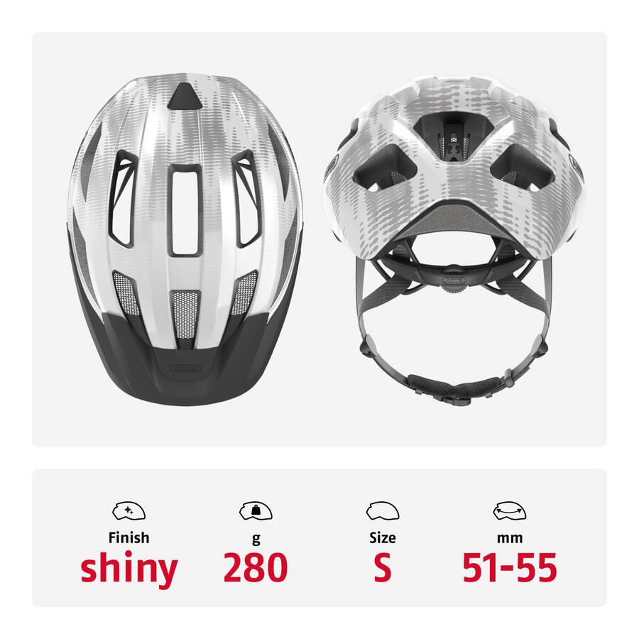 ABUS Macator — шлем начального уровня для многих случаевМодель Macator от ABUS представляет собой спортивный универсальный шлем для повседневного использования. Привлекательный дизайн, высокая безопасность и удобная посадка делают этот шлем идеальным спутником как для тренировочных поездок, так и для ежедневных поездок на работу. Благодаря высококачественному сочетанию поликарбонатной оболочки и внутренней оболочки из пенополистирола (EPS) он легкий, с хорошей подкладкой и прочный. Интуитивно понятная система регулировки обеспечивает идеальную посадку на голове и подбородке. Во время езды воздухозаборники и воздуховыпускные отверстия обеспечивают аэродинамическую вентиляцию и низкое сопротивление воздуха. Это настоящее преимущество, особенно для любителей шоссейного велоспорта. ABUS Macator — спортивный велосипедный шлем практически для любых маршрутов. Другие преимущества продукта: In-Mold: производственный процесс, при котором внутренняя оболочка из жесткой пены вспенивается во внешнюю оболочку из поликарбоната. Совместимость с прическами конский хвост: подходит для длинных причесок, таких как косы. Сетка от насекомых для защиты от насекомых. Полное кольцо: пластиковое кольцо, соединенное с регулировочным колесом, полностью охватывает голову, обеспечивая идеальную посадку.