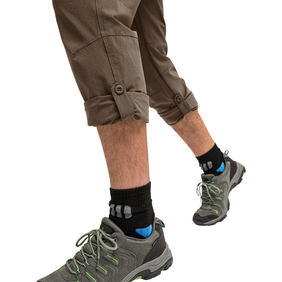 Абсолютный победитель тестов среди функциональных походных брюк: mSTRETCH pro 4. Идеальный материал для пеших прогулок. Эластичный, дышащий, водоотталкивающий, быстросохнущий. Штанины можно закатать благодаря практичной функции roll-up. Пояс с эластичной гибкой зоной обеспечивает наилучшую посадку. Без PFC. Гарантия Fair Wear Foundation 5 лет.