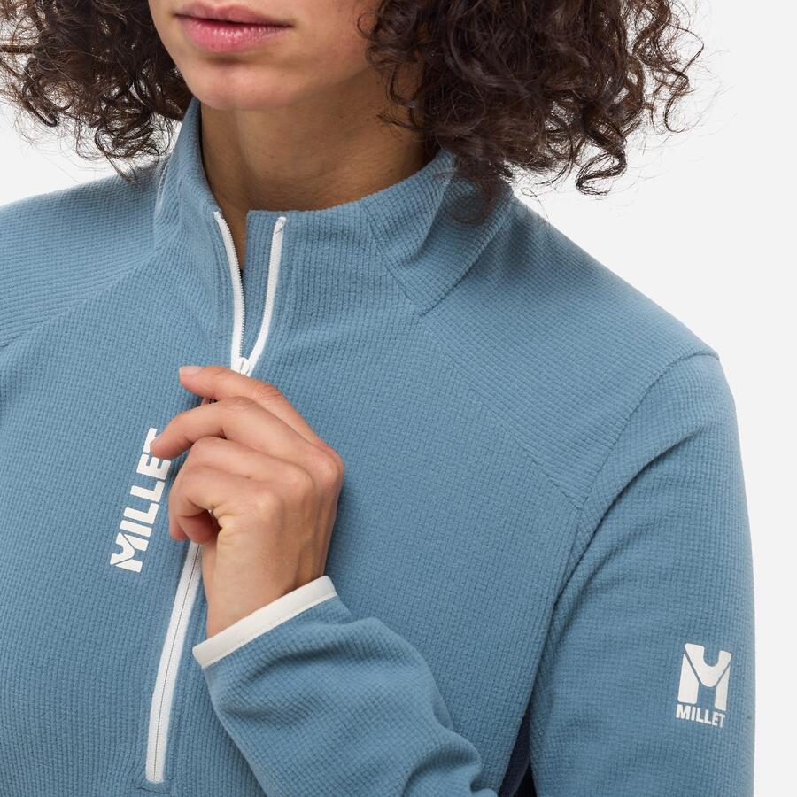 Мы были в пути несколько часов. Наш флисовый свитер UBIC LIGHTGRID сохраняет тепло и благодаря сетчатой структуре оптимально отводит влагу. В зависимости от нагрузки и погодных условий мы расстёгиваем переднюю молнию до середины длины более или менее широко. Благодаря своей мягкости мы берём этот высокотехнологичный флис с собой для самых разных видов активного отдыха. Он производится на фабрике в Миллете экологически чистым способом из 100% переработанного Polartec.