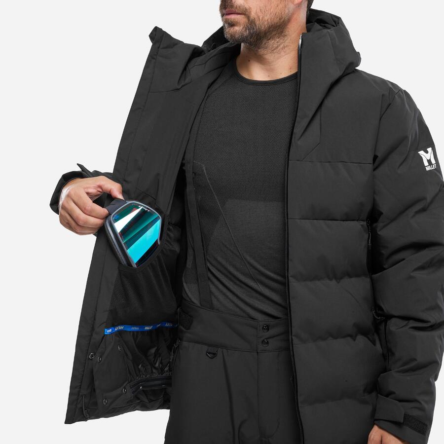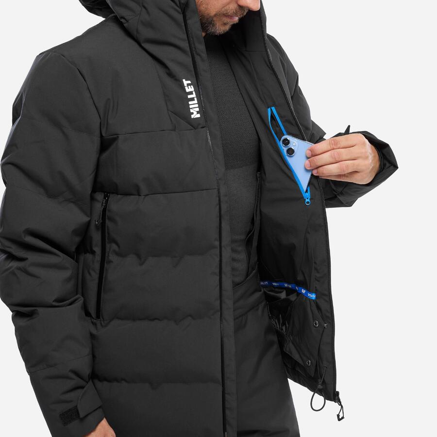 Благодаря пяти карманам в нашей функциональной куртке поместится всё необходимое: горнолыжные очки и ски-пасс имеют отдельный карман, а мелкие аксессуары можно хранить в двух передних карманах на молнии и нагрудном кармане. Наша горнолыжная куртка оснащена эластичными манжетами и убирающейся снежной юбкой для защиты от снега. Воротник и регулируемый капюшон обеспечивают оптимальную защиту от ледяного ветра.