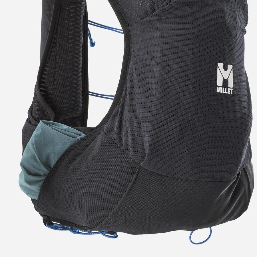 Наши палки прикреплены к дну рюкзака для трейлраннинга. Наши ключи и телефон хранятся в двух сетчатых карманах на молнии спереди и сбоку. Идеально отрегулированный и удерживаемый на уровне груди тремя эластичными шнурками, вы можете бежать в полном расслаблении. Наступает дождь. Мы берем куртку в расширяемом отделении над задним отделением на молнии, а наша флисовая куртка остается в расширяемом двойном кармане сзади. Наши энергетические батончики и гели удобно положить в четыре передних эластичных кармана. Этот рюкзак для бега на длинные дистанции дополнен аварийным свистком.