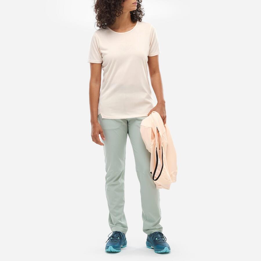 Мы шли в спокойном темпе несколько часов. Наша походная футболка WANAKA LIGHT отлично отводит влагу благодаря материалу Drynamic из 100% полиэстера. Движения плавные и комфортные. Мы ценим эластичность и лёгкость этой треккинговой футболки, которая сопровождает нас повсюду. Жаккардовый узор с горными мотивами по всей футболке создаёт оригинальный и эстетичный образ.