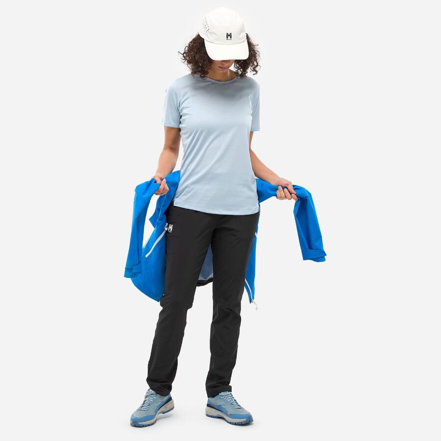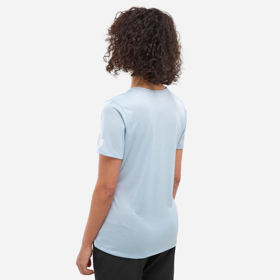 Мы шли в спокойном темпе несколько часов. Наша походная футболка WANAKA LIGHT отлично отводит влагу благодаря материалу Drynamic из 100% полиэстера. Движения плавные и комфортные. Мы ценим эластичность и лёгкость этой треккинговой футболки, которая сопровождает нас повсюду. Жаккардовый узор с горными мотивами по всей футболке создаёт оригинальный и эстетичный образ.