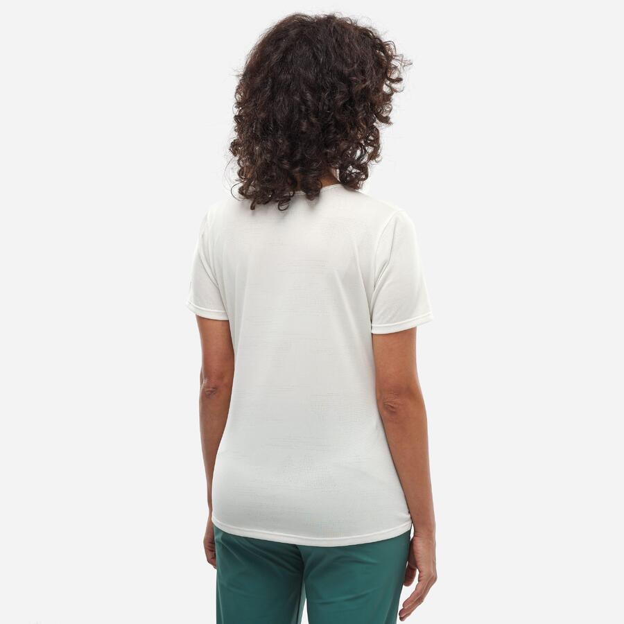 Мы шли в спокойном темпе несколько часов. Наша походная футболка WANAKA LIGHT отлично отводит влагу благодаря материалу Drynamic из 100% полиэстера. Движения плавные и комфортные. Мы ценим эластичность и лёгкость этой треккинговой футболки, которая сопровождает нас повсюду. Жаккардовый узор с горными мотивами по всей футболке создаёт оригинальный и эстетичный образ.