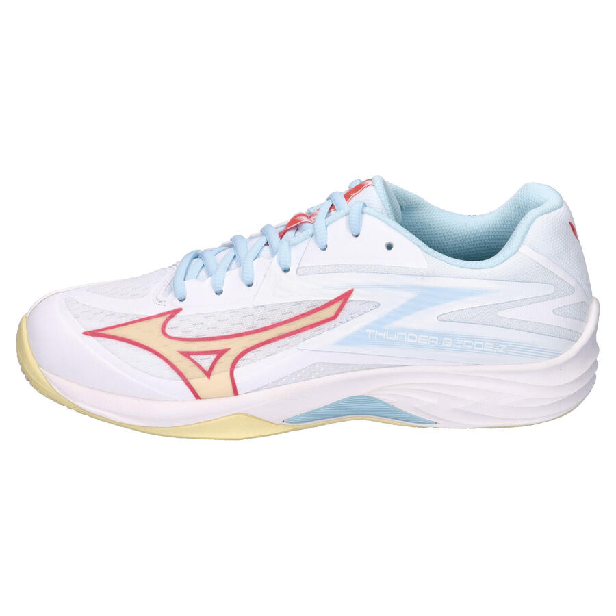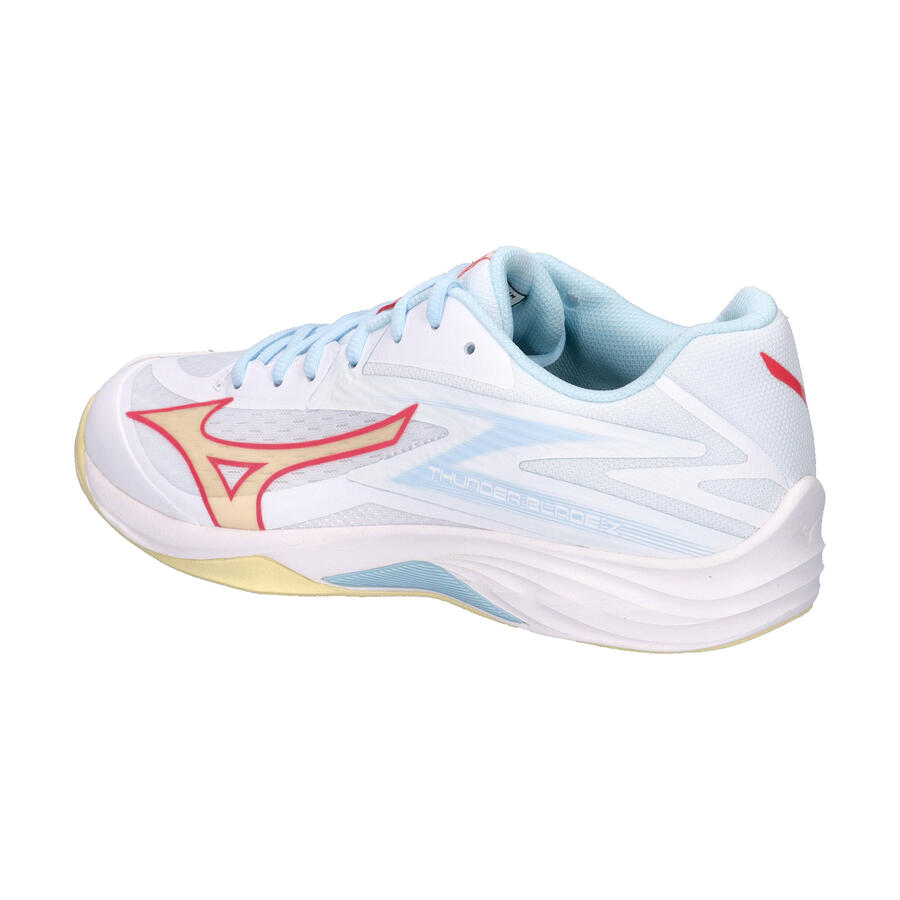 Женские волейбольные кроссовки Mizuno THUNDER BLADE Z. Thunder Blade Z, полностью обновленные от верха до подошвы, — это оптимальная модель для комфорта и легкости. Конструкция верха, исключающая напряжение, в сочетании с мягким литьем EVA и легкой подошвой позволяет полностью сосредоточиться на игре. Широкий аутригер в передней части стопы и стабилизатор из термопластичного полиуретана (TPU) обеспечивают устойчивость в ключевых зонах. Преимущества: амортизация и легкость благодаря литой межподошве и продуманной форме подошвы. Широкая аутригерная подошва обеспечивает высокую устойчивость. Съемная стелька толщиной 5 мм и накладка U4icX Strobel обеспечивают более мягкое ощущение при надевании. Не оставляющая следов резиновая подошва обеспечивает хорошее сцепление с площадкой. Верх: текстиль, другие материалы. Подкладка и стелька: текстиль. Подошва: другие материалы.
