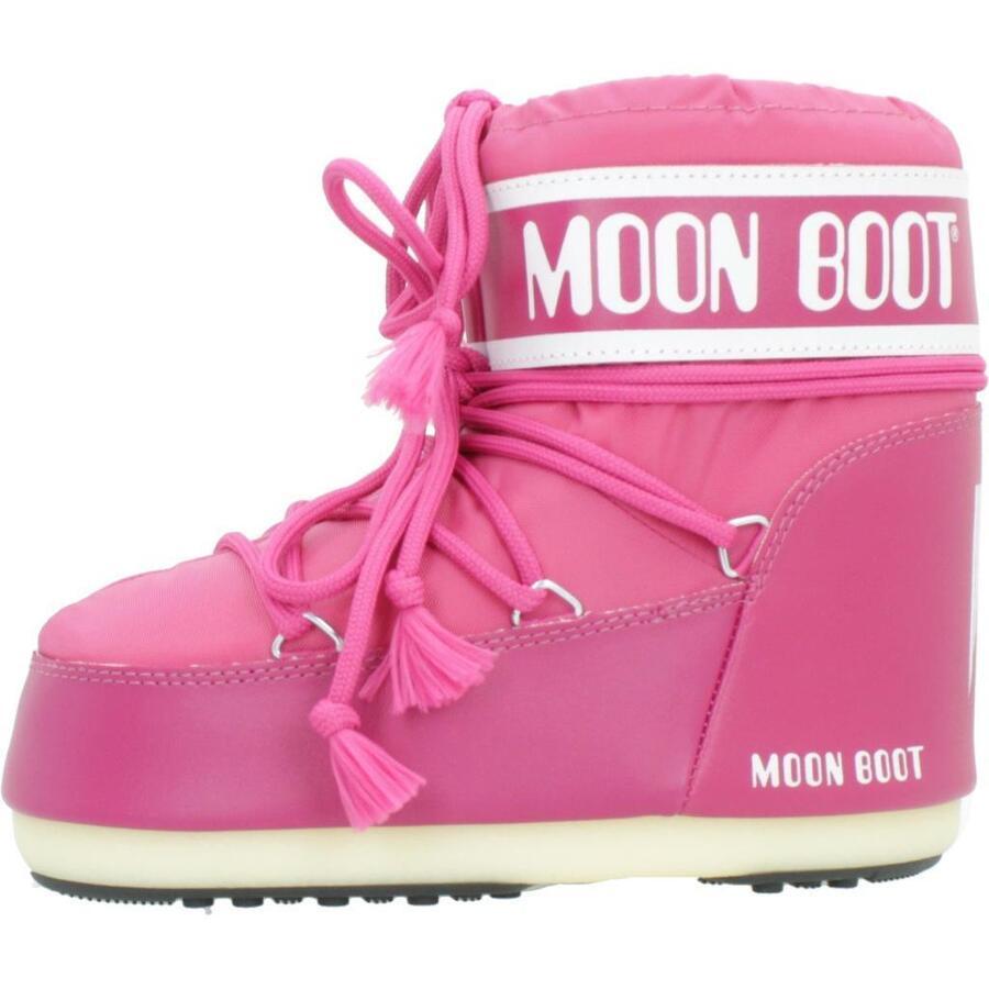 Модель MB Icon Low NY от Moon Boot, розового цвета, изготовлена из текстиля. Подошва синтетическая. Конструкция: слип-он. Сделано в Китае.