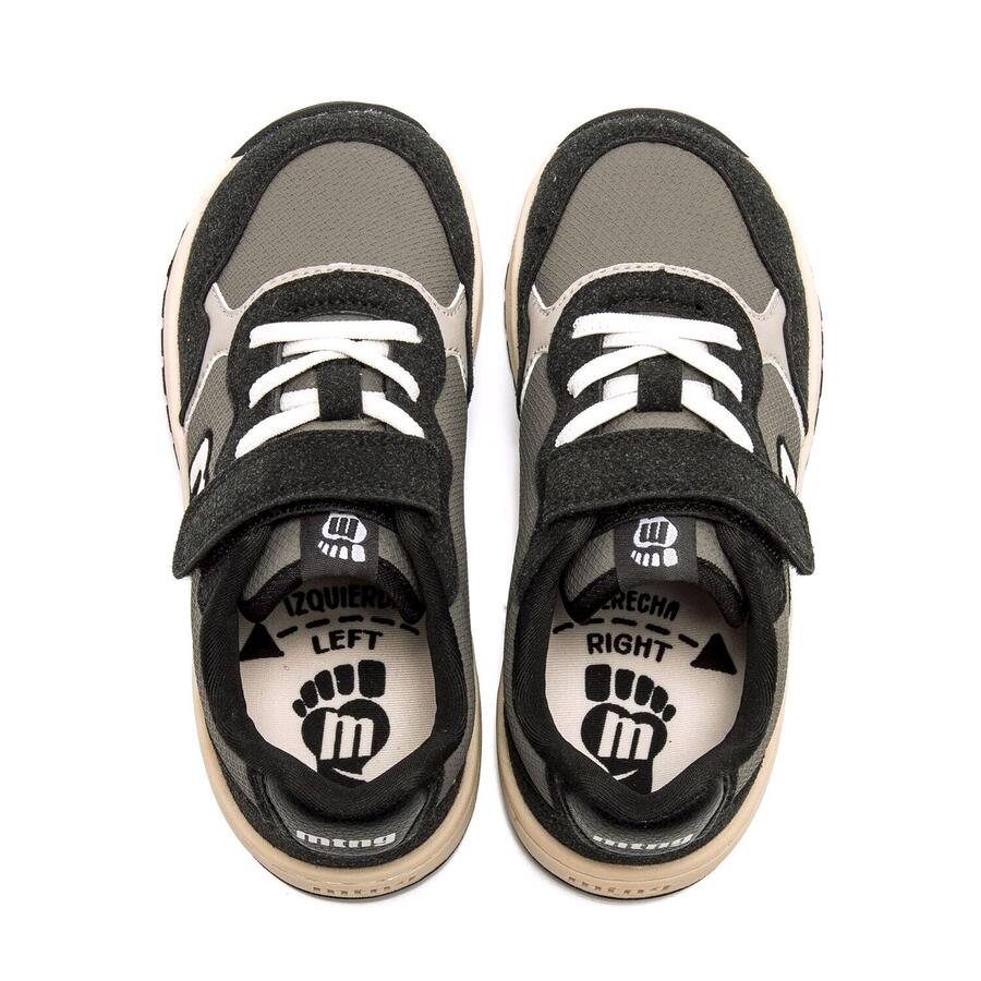 Кроссовки Gray Free для мальчиков от бренда MTNG. Дизайн сочетает в себе различные фактуры: сетку под парусину, черные замшевые усиления и светло-серые детали с видимой строчкой для динамичного образа. Оснащены эластичными шнурками, застежкой на липучке, вышитым логотипом сбоку и бежевой подошвой с усиленным носком для дополнительной прочности. Разработаны в тесном сотрудничестве с доктором Хуанхо Лопесом, специалистом по детской и спортивной травматологии, с учетом естественного развития детской стопы. Широкий носок обеспечивает свободное движение пальцев внутри обуви. Съемные стельки облегчают проверку соответствия размера обуви вашему ребенку. Легкое открывание также позволяет ребенку самостоятельно надевать и снимать обувь. С сертификацией VEGAN от INESCOP, которая гарантирует, что основные компоненты материала не имеют животного происхождения. Стиль: Спортивный Основной материал: Синтетика Внутренний материал: Синтетика Материал стельки: Синтетика Материал подошвы: Резина Тип каблука: Плоский Высота каблука: Низкий (от 1 до 3 см) Форма носка: Круглая Тип застежки: Шнурки - липучка