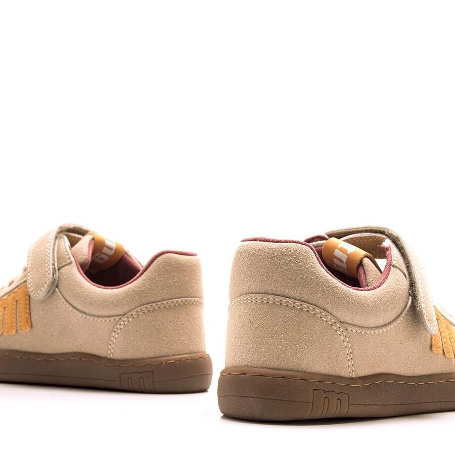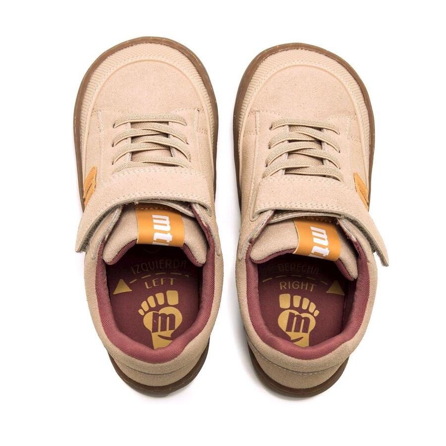 Детские кроссовки кремового цвета от бренда Mtng, модель Free. Этот дизайн отличается жёлтым логотипом бренда сбоку, который в сочетании с карамельной подошвой создаёт современный и оригинальный контраст. Оснащены застёжкой-липучкой и шнурками. Разработаны специально в сотрудничестве с доктором Хуанхо Лопесом, специалистом по спортивной и детской травматологии, для поддержки естественного развития детской стопы. Широкий носок позволяет пальцам свободно двигаться внутри обуви. Съёмные стельки облегчают контроль размера и помогают подобрать обувь подходящего размера для вашего ребёнка. Легкое открывание также позволяет ребёнку самостоятельно надевать и снимать обувь. С сертификатом VEGAN, выданным INESCOP, который гарантирует, что основной материал не содержит волокон животного происхождения.Стиль: ПовседневныйОсновной материал: СинтетикаВнутренний материал: СинтетикаМатериал стельки: СинтетикаМатериал подошвы: РезинаТип каблука: ПлоскийВысота каблука: Низкий (от 1 до 3 см)Форма носка: КруглаяТип застежки: Шнурки - липучка