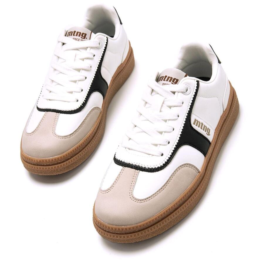 Белые женские кроссовки Cumbia от Mtng. Эти кроссовки сочетают в себе классический дизайн и универсальность. Коричневая подошва сочетается с белым верхом и черными деталями, создавая современный контраст. Идеально подходят для повседневной носки. Шнуровка. Если вы предпочитаете классический стиль и ищете спутника на каждый день, кроссовки Cumbia от Mtng — это то, что вам нужно. Стиль: Повседневный Основной материал: Синтетика Материал внутренней части: Синтетика Материал стельки: Синтетика Материал подошвы: Резина Тип каблука: Плоский Высота каблука: Средний (от 3 до 5 см) Форма носка: Круглый Тип застежки: Шнурки