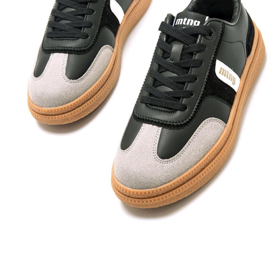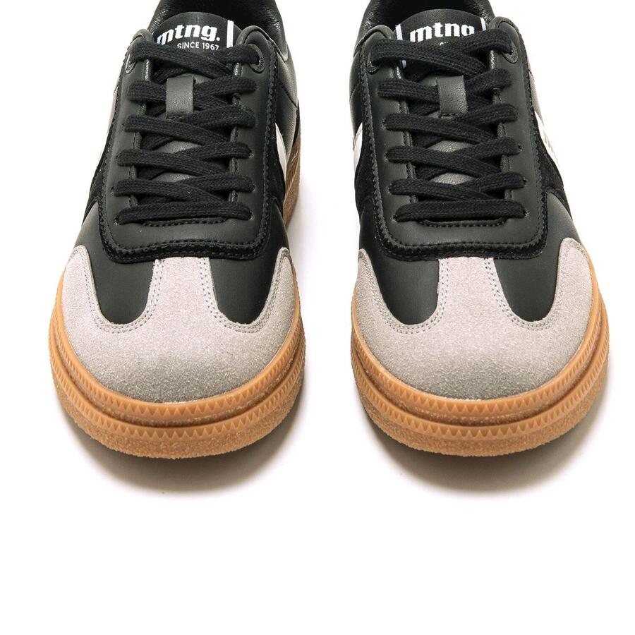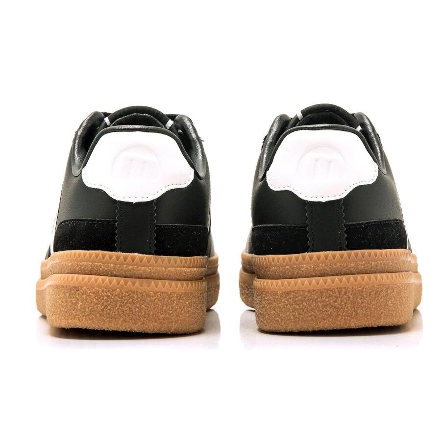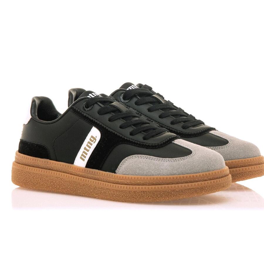 Женские кроссовки Cumbia от MTNG, вдохновлённые классическим дизайном Bamba, представлены в чёрном цвете с плоскими шнурками в тон. Белые детали сбоку и на пятке создают модные контрасты, а золотистые инициалы бренда сбоку добавляют элегантный акцент. Двухслойная платформа добавляет несколько дополнительных сантиметров высоты и представлена в модном карамельном оттенке. Классическая модель MTNG, идеально подходящая для повседневной носки. Стиль: Повседневный Основной материал: Синтетика Внутренний материал: Синтетика Материал стельки: Синтетика Материал подошвы: Резина Тип каблука: Плоский Высота каблука: Средний (от 3 до 5 см) Форма носка: Круглая Тип застёжки: Шнурки