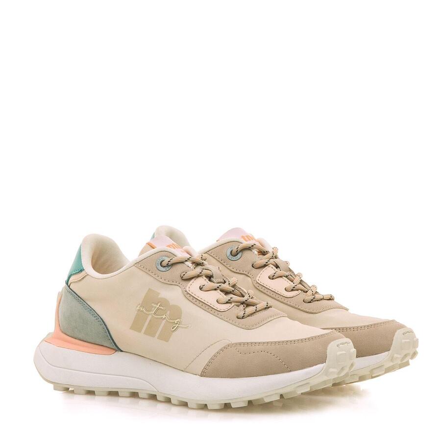 Женские кроссовки Zinc бежевого цвета от Mtng. Эти кроссовки украшены синими и коралловыми деталями, которые добавляют нотку оригинальности. Толстая подошва и мягкая конструкция обеспечивают комфорт. Кроссовки Zinc от Mtng идеально подходят для того, чтобы добавить яркий акцент и стиль в любой образ.Стиль: СпортивныйОсновной материал: ТекстильВнутренний материал: ТекстильМатериал стельки: СинтетическийМатериал подошвы: РезинаТип каблука: ПлоскийВысота каблука: Низкий (от 1 до 3 см)Форма носка: КруглыйТип застёжки: Шнурки