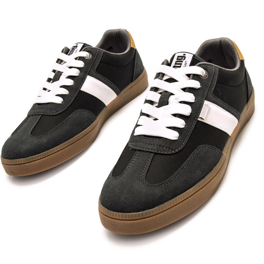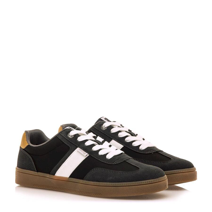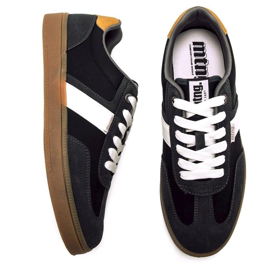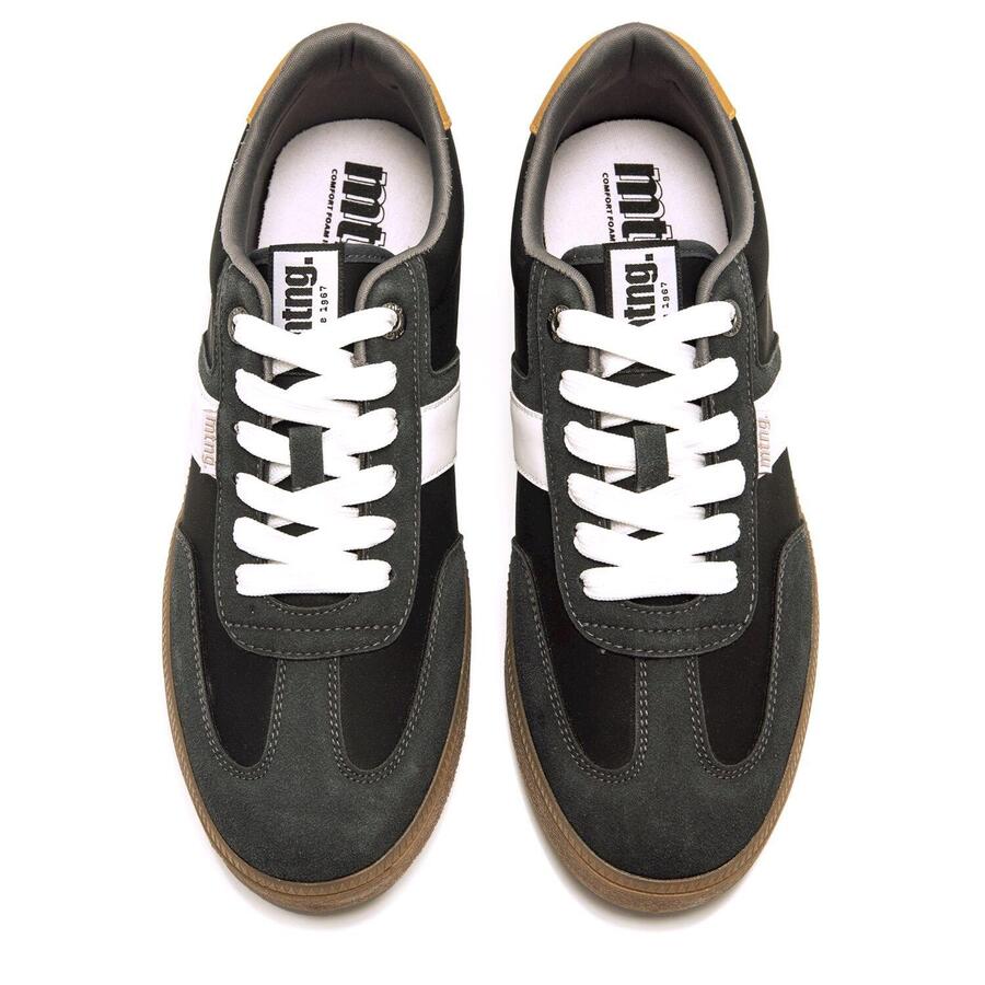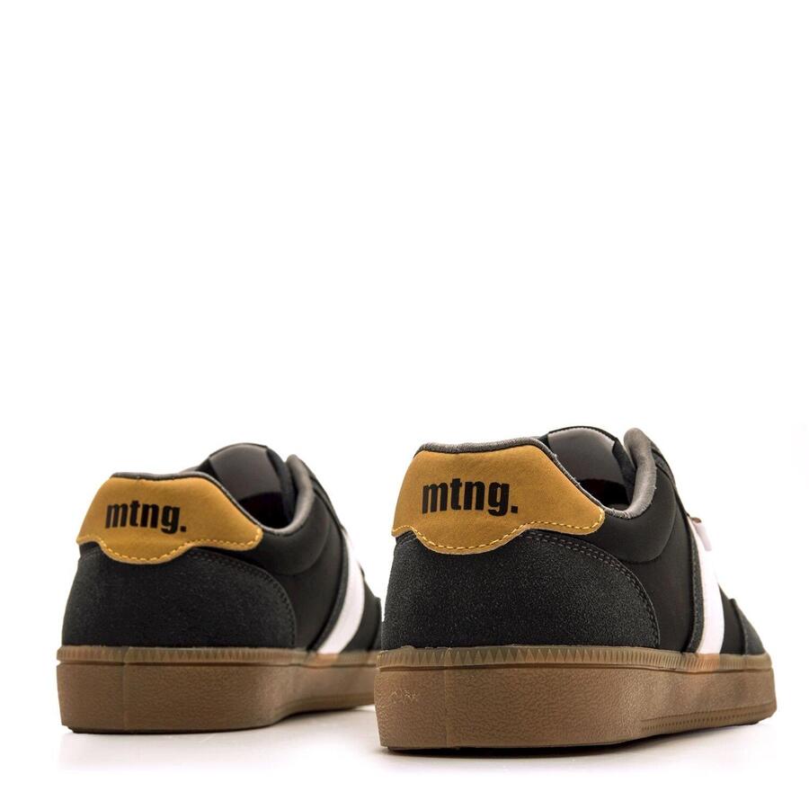 Черные мужские кроссовки Goal от MTNG сочетают темные панели с белой полосой сбоку и шнурками для эффектного контраста. Пятка дополнена горчично-желтым усиливающим элементом. Подошва цвета карамели завершает ретро-образ, вдохновленный классическими кроссовками для дома. Идеально подходят для городского повседневного стиля благодаря низкому вырезу и высокому уровню комфорта. Сертифицировано INESCOP как VEGAN. Стиль: Повседневный Основной материал: Синтетика Внутренний материал: Синтетика Материал стельки: Синтетика Материал подошвы: Резина Тип каблука: Плоский Высота каблука: Низкий (от 1 до 3 см) Форма носка: Круглая Тип застежки: Шнурки