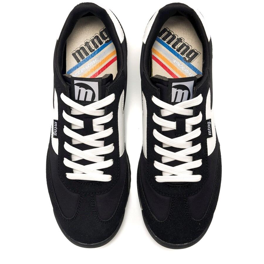 Мужские черные кроссовки с белыми деталями от MTNG, олимпийской модели. Классический дизайн напоминает кроссовки 70-х годов и сочетает контрастные панели для динамичного, вневременного образа. Ребристая резиновая подошва обеспечивает хорошее сцепление, а усиленный носок и шнуровка — надежную и удобную посадку. Кроссовки оснащены стелькой толщиной 4 мм с технологией Starfit, что обеспечивает мягкость и комфорт. Комфортная пена Comfort Foam обеспечивает дополнительную амортизацию, идеально подходящую для длительного комфорта. Стиль: Повседневный Основной материал: Текстиль Внутренний материал: Текстиль Материал стельки: Синтетический Материал подошвы: Резина Тип каблука: Плоский Высота каблука: Низкий (от 1 до 3 см) Форма носка: Круглый Тип застежки: Шнурки