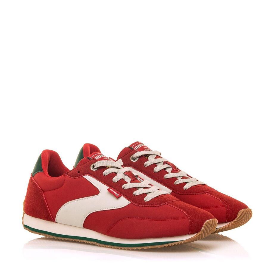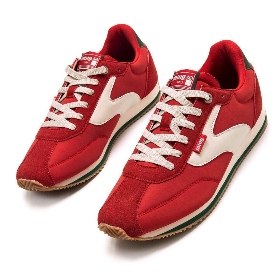 Красные мужские кроссовки Mtng, модель Omega, в винтажном стиле. Ретро-дизайн сочетает серую боковую панель с зелёной деталью на пятке и надписью 1967, отдавая дань уважения истокам бренда. Трёхцветная рифлёная подошва белого, зелёного и карамельного цветов обеспечивает хорошее сцепление и комфорт. Идеально сочетается с джинсами или брюками чинос. Стелька толщиной 4 мм с технологией Starfit обеспечивает мягкость и комфорт. Амортизация Comfort Foam обеспечивает дополнительный комфорт при длительном ношении. Стиль: Повседневный Основной материал: Текстиль Внутренний материал: Текстиль Материал стельки: Синтетика Материал подошвы: Резина Тип каблука: Плоский Высота каблука: Низкий (от 1 до 3 см) Форма носка: Круглый Тип застежки: Шнурки