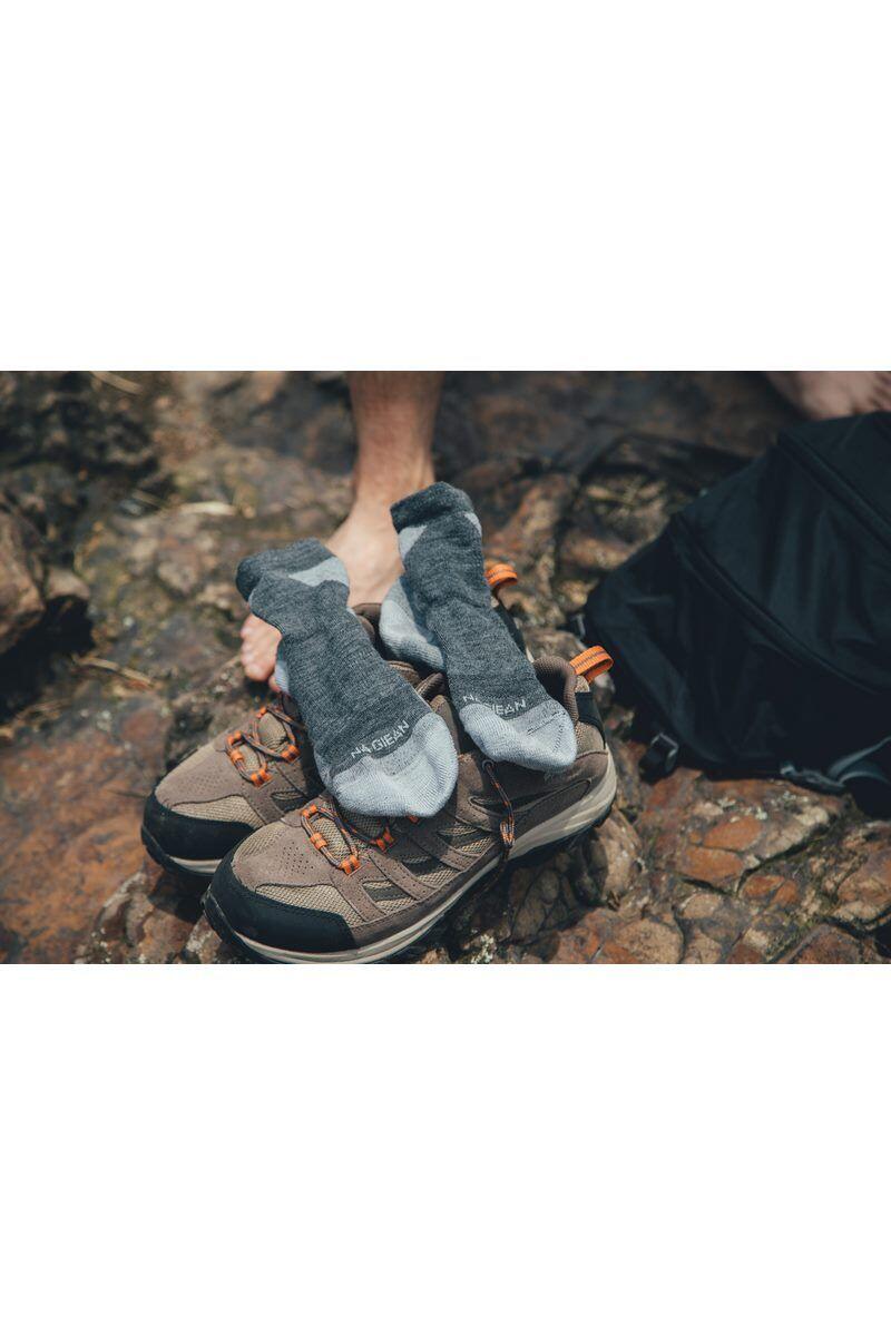 Обеспечивайте себе комфорт на горной тропе или в повседневной жизни в городе. Носки Na Giean Enhanced Medium Weight Micro NGMM0002 приятны для кожи и очень прочны. Они изготовлены из трикотажа, сочетающего синтетические волокна, обеспечивающие эластичность и прочность, с натуральной шерстью мериноса. Это позволяет носкам удовлетворять потребности кожи во время активности, обеспечивая оптимальную воздухопроницаемость, сохраняя кожу сухой и обеспечивая хорошую терморегуляцию. Благодаря шерсти мериноса они также обладают антибактериальными свойствами, которые заметно уменьшают проблему запаха. Конструкция носков обеспечивает дополнительную вентиляцию и усиление в области носка и пятки, а также бесшовную область носка для предотвращения болезненных ссадин. Манжета на лодыжке не давит и предотвращает скольжение, а мягкая подошва обеспечивает дополнительную изоляцию.