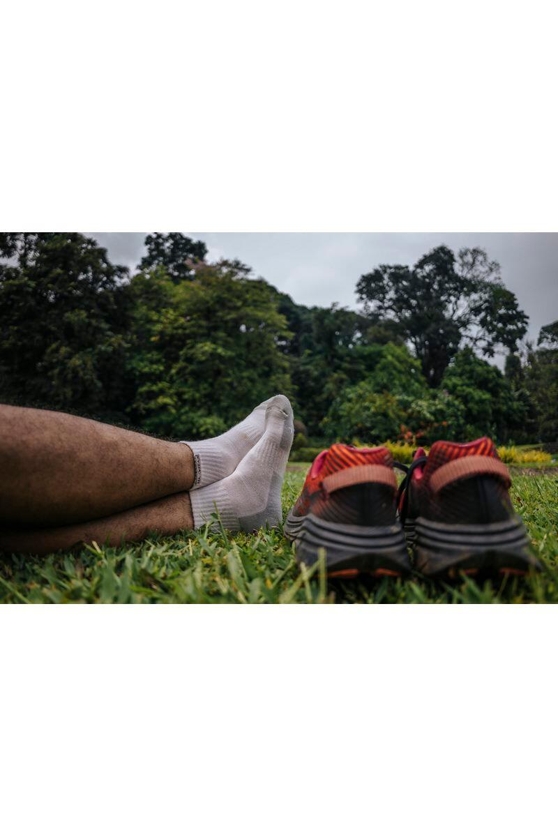 Носки Na Giean Medium Weight Micro NGMM0001 обеспечивают комфорт на горных тропах, обеспечивая максимальный комфорт для кожи и ног. Это достигается благодаря продуманной конструкции и уникальному трикотажному материалу, сочетающему синтетические волокна и натуральную мериносовую шерсть. Благодаря этому носки дышащие, отводят влагу, регулируют тепло (чтобы вы не замерзли) и противодействуют запахам благодаря своим антибактериальным свойствам. Конструкция носков ориентирована на поддержку подъема стопы и защиту от истирания, поэтому пальцы ног не только усилены (как и пятка), но и не имеют швов, которые могут мешать при длительных походах. Специальная вентиляционная зона завершает конструкцию. Носки имеют высоту выше щиколотки с манжетой, предотвращающей сдавливание и скольжение, а также подошву средней амортизации для дополнительного комфорта на тропе.