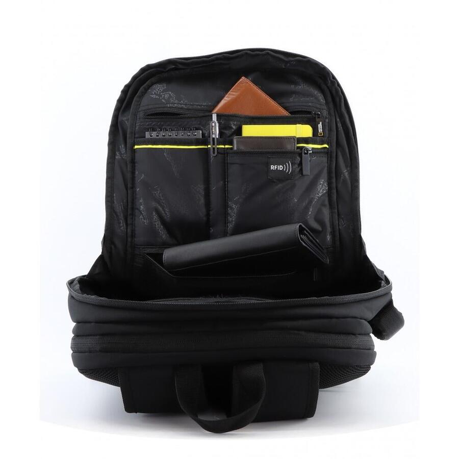Этот стильный рюкзак для ноутбука National Geographic Mutation изготовлен из специально разработанного материала рипстоп, полученного из переработанных ПЭТ-бутылок. Это не только способствует устойчивому развитию мира, но и предлагает красивый дизайн. Рюкзак имеет два просторных отделения, одно из которых содержит чехол для 15-дюймового ноутбука. Он также имеет два передних кармана на молнии. Внутренняя часть рюкзака полностью выстлана переработанным материалом. Для оптимальной защиты ваших электронных устройств есть отдельное отделение для ноутбука и планшета, которое поглощает удары и толчки. Также есть несколько универсальных отделений, кольцо для ключей и карман с защитой RFID. Рюкзак имеет прочную ручку для переноски, мягкую спинку и удобно регулируемые плечевые ремни. Это делает его легким и удобным для ношения даже в течение длительного времени. Рюкзак для ноутбука имеет размеры 32 x 16 x 43 см и имеет объем 20 литров. Несмотря на большую вместимость, рюкзак весит всего 600 граммов.