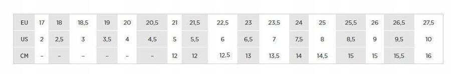 Размер — внутренняя длина, измеренная вручную: 22,5 x 13,6 см, 23,5 x 14,3 см, 25 x 15,5 см, 26 x 16,2 27,5–17 см 28,5–17,7 см 30–18,5 см 31–19,3 см 32,5–20,5 см 33,5–21,1 см 35– 22 см 36–23 см 37,5–23,7 см 38,5–24,5 см
