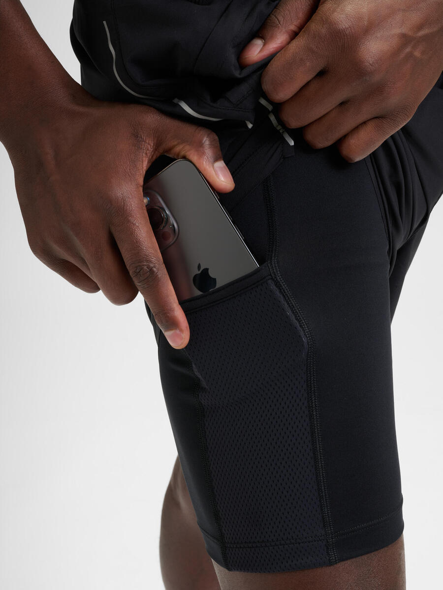 Шорты Nwlfast 2-в-1 с карманами на молнии сочетают в себе прочные тканые внешние шорты и эластичные внутренние шорты с сетчатым карманом, создавая идеальное сочетание для занятий спортом. Они оснащены регулируемым поясом на шнурке, боковыми карманами на молнии, а также светоотражающими принтами сзади и по бокам. Логотип на штанине завершает дизайн.