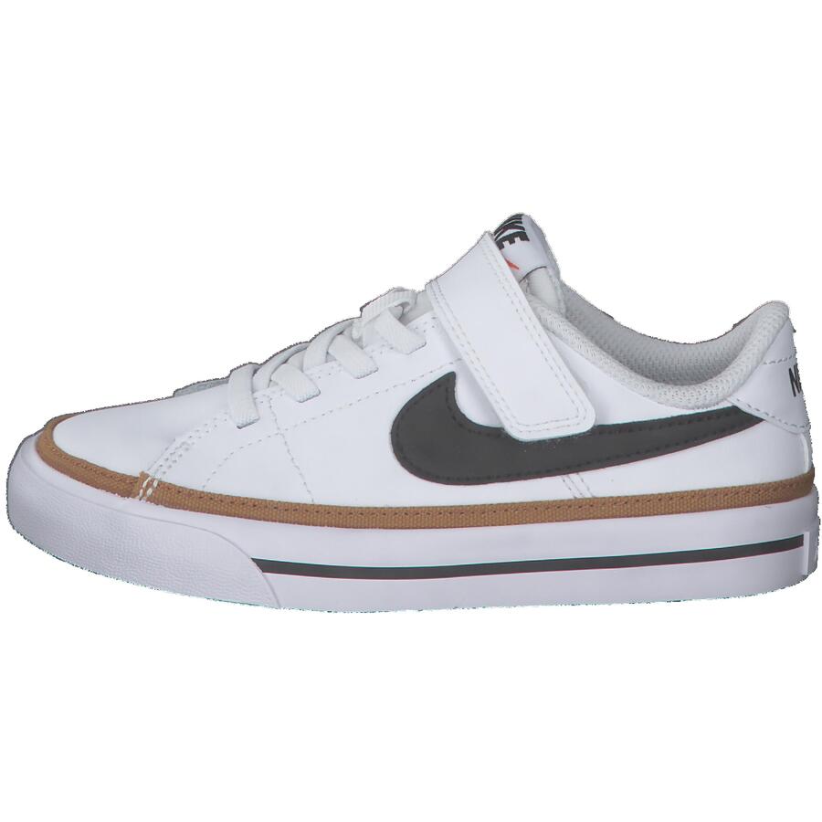 Детские кроссовки Nike Court Legacy (PSV). Nike Court Legacy — это детская повседневная обувь, вдохновленная теннисной культурой. Эти низкие кроссовки прочные и удобные, с традиционной строчкой и ретро-логотипом Swoosh. Малыши надевают эти кроссовки, и начинается игра, сет и матч! Кожа обеспечивает прочность и классический теннисный стиль. Эластичные шнурки с липучками позволяют легко надевать и снимать кроссовки. Резиновая подошва во всю длину с зигзагообразным рисунком обеспечивает сцепление и классический стиль. Мягкая амортизация из пеноматериала обеспечивает лёгкость и комфорт. Верх: кожа. Подкладка и стелька: текстиль; другие материалы. Подошва: другие материалы.